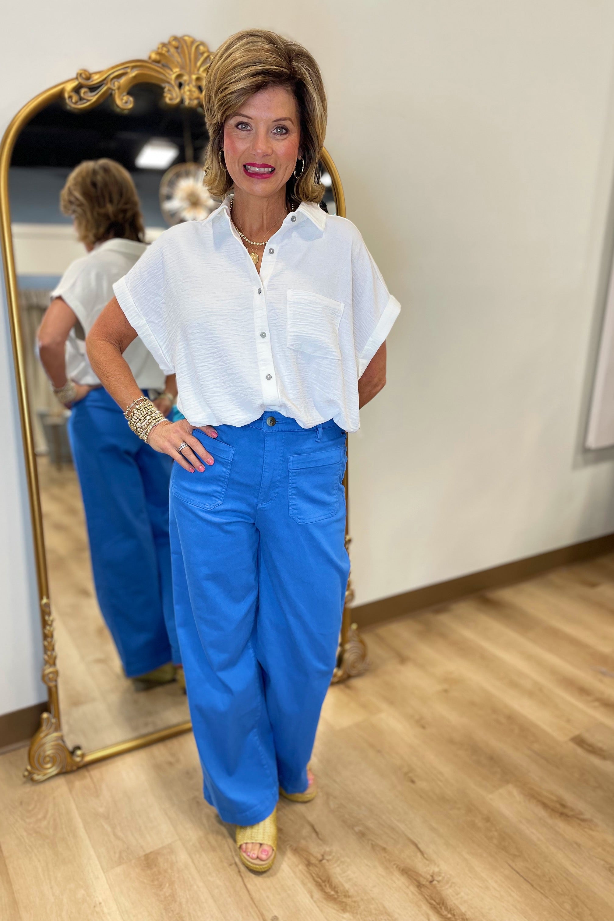 WOVEN AIRFLOW BUTTON-DOWN SHIRTS White - HI-LOW HEM - SIDE SLIT.