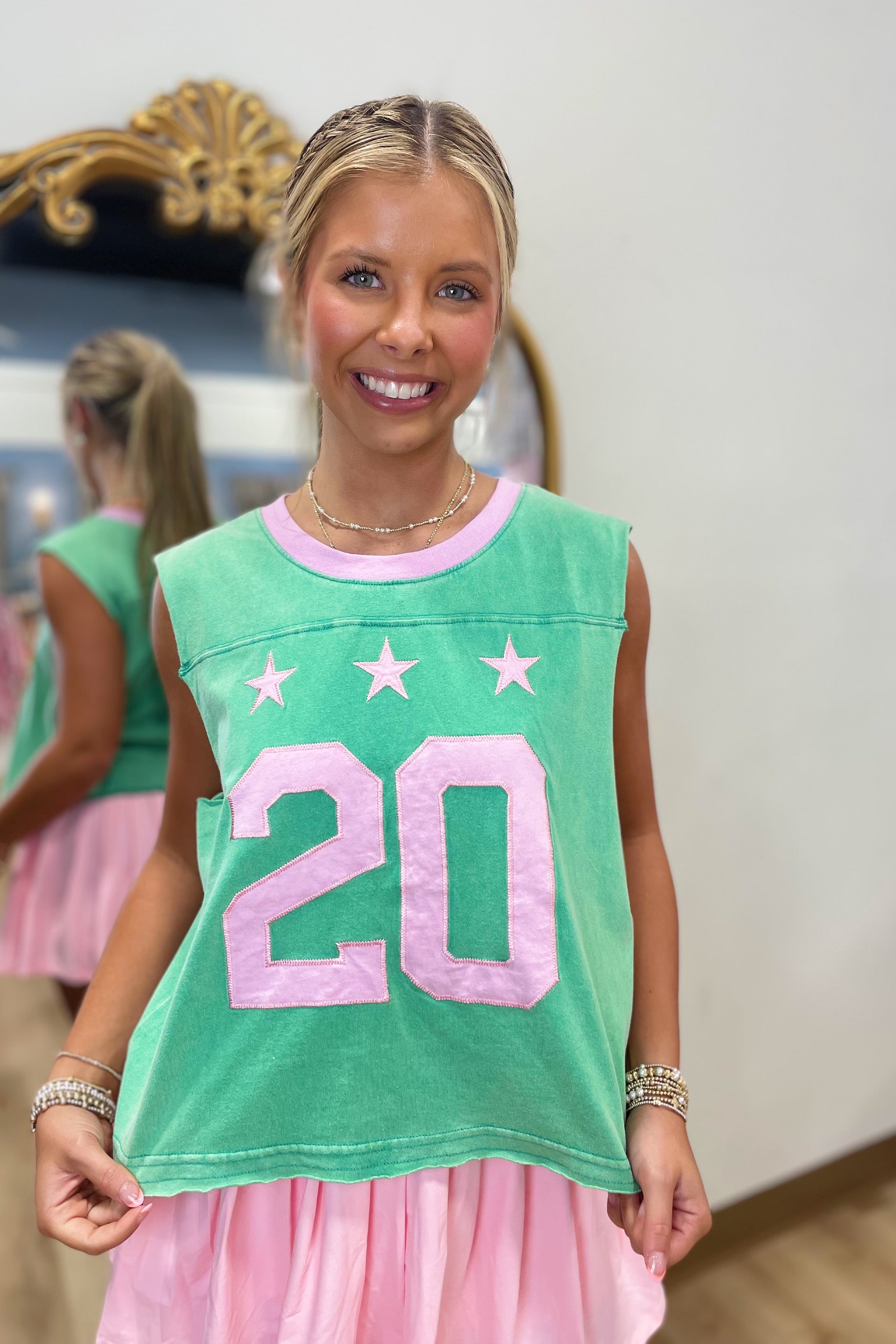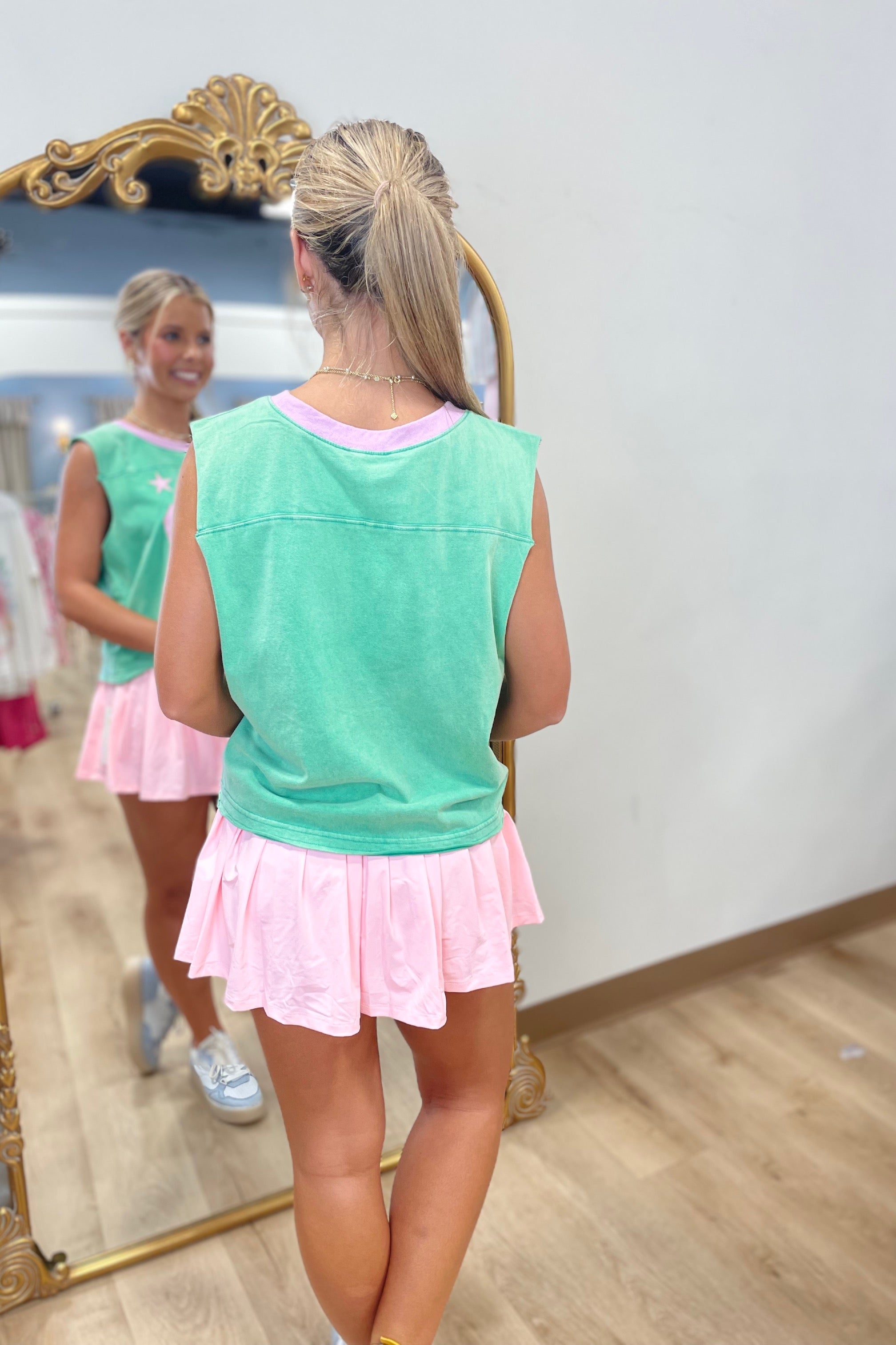 20 Stars Sleeveless Cropped Tank Pink & Green.