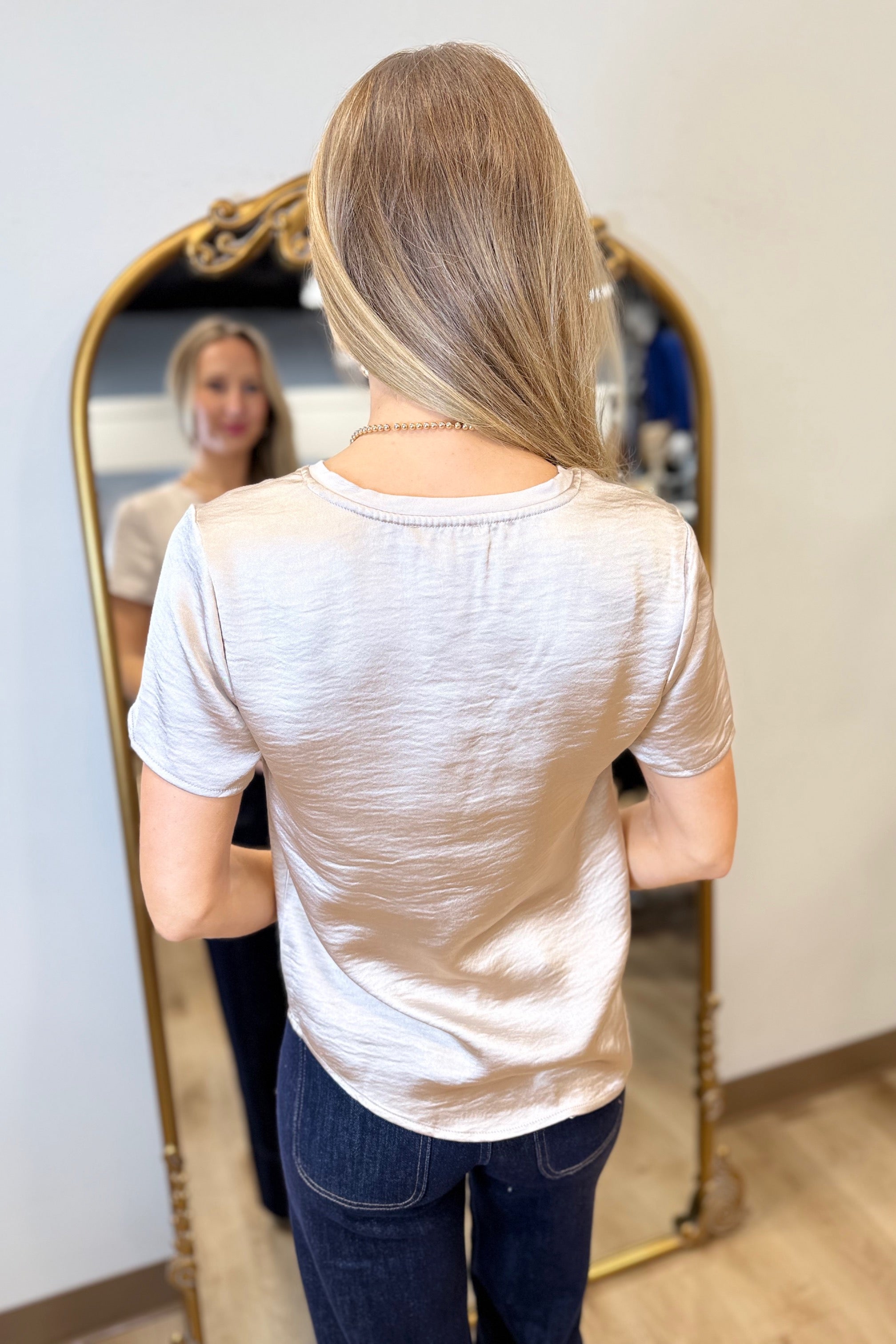 Another Love V Neck Satin Short Sleeve Top Pearl.