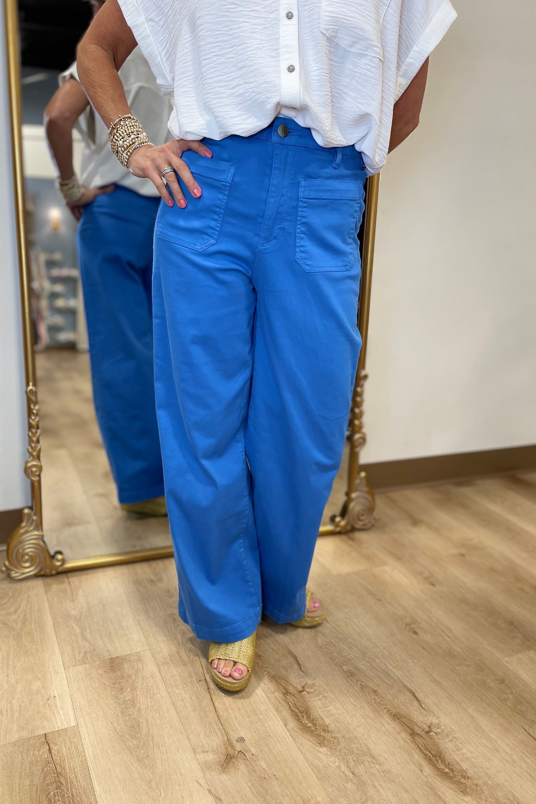 These pants are versatile and comfortable, with a chic, relaxed fit and patch pockets for practicality. The wide-leg silhouette works for any occasion, whether you're dressing up or keeping it casual.