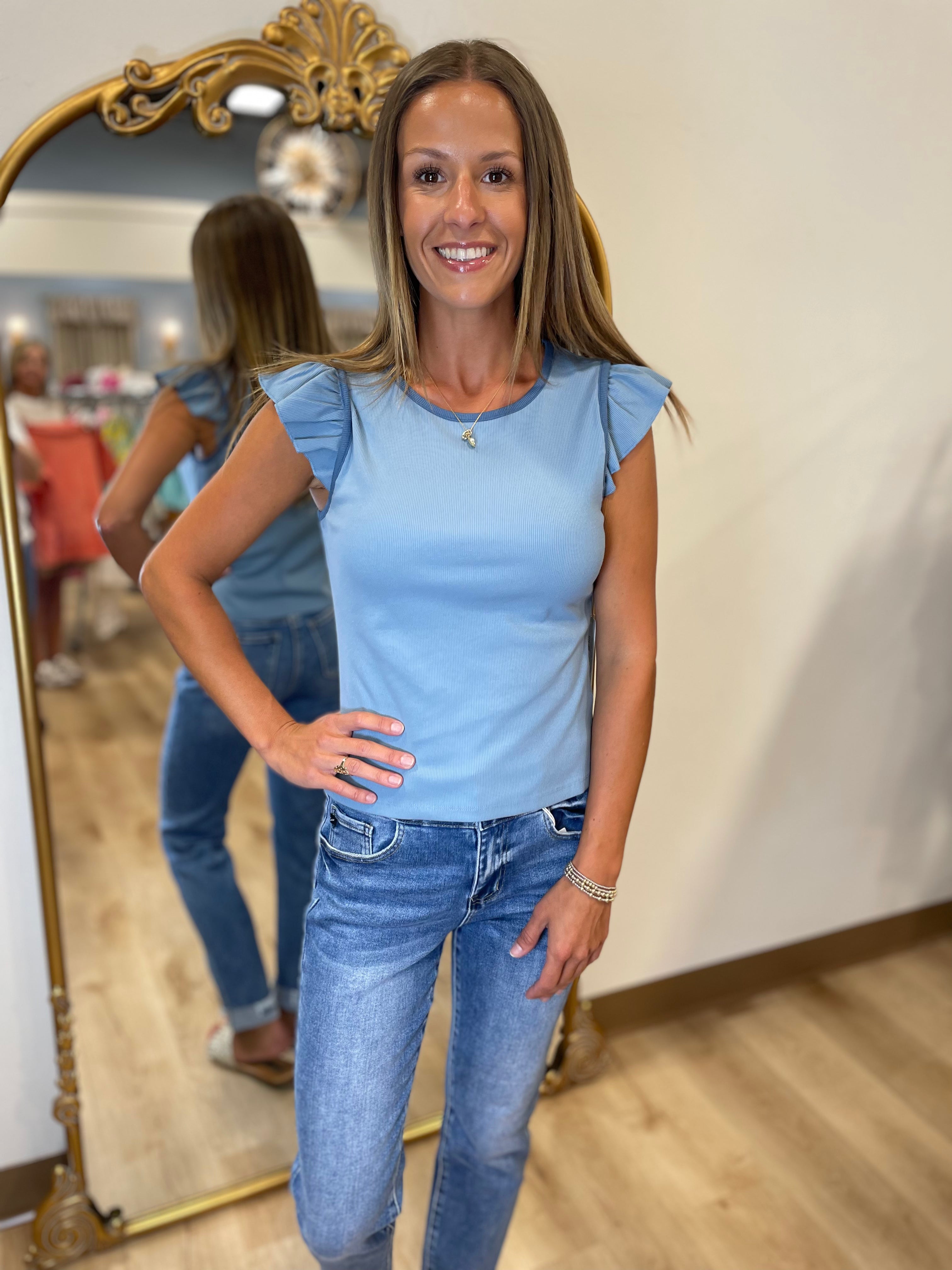 The Yuki rib ruffle contrast top is a true staple for versatile outfits. This chic top features delightful ruffle detailing and a sleek contrast design, offering a flattering silhouette that complements any body type.