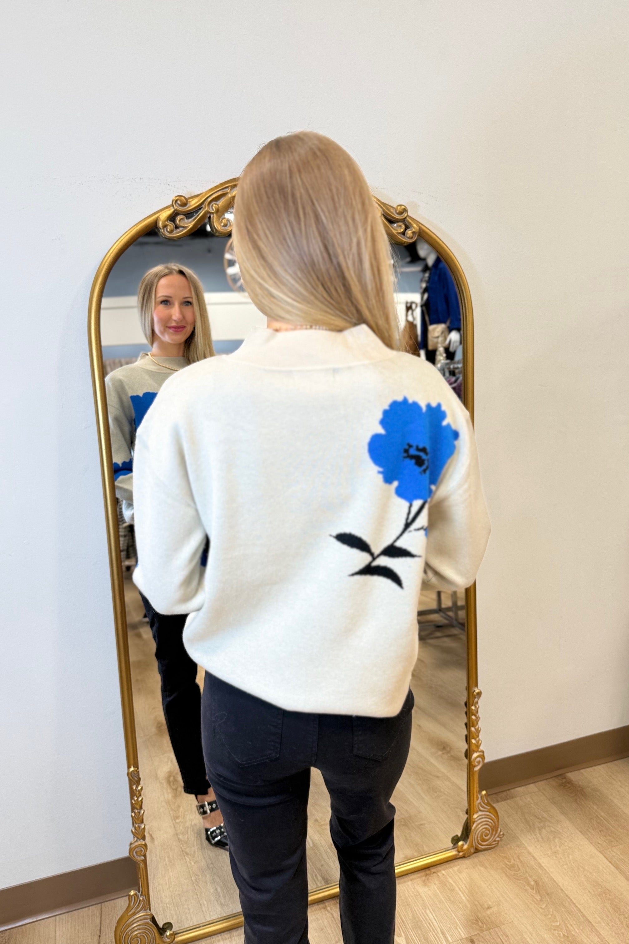 APNY Floral Funnel Neck Sweater