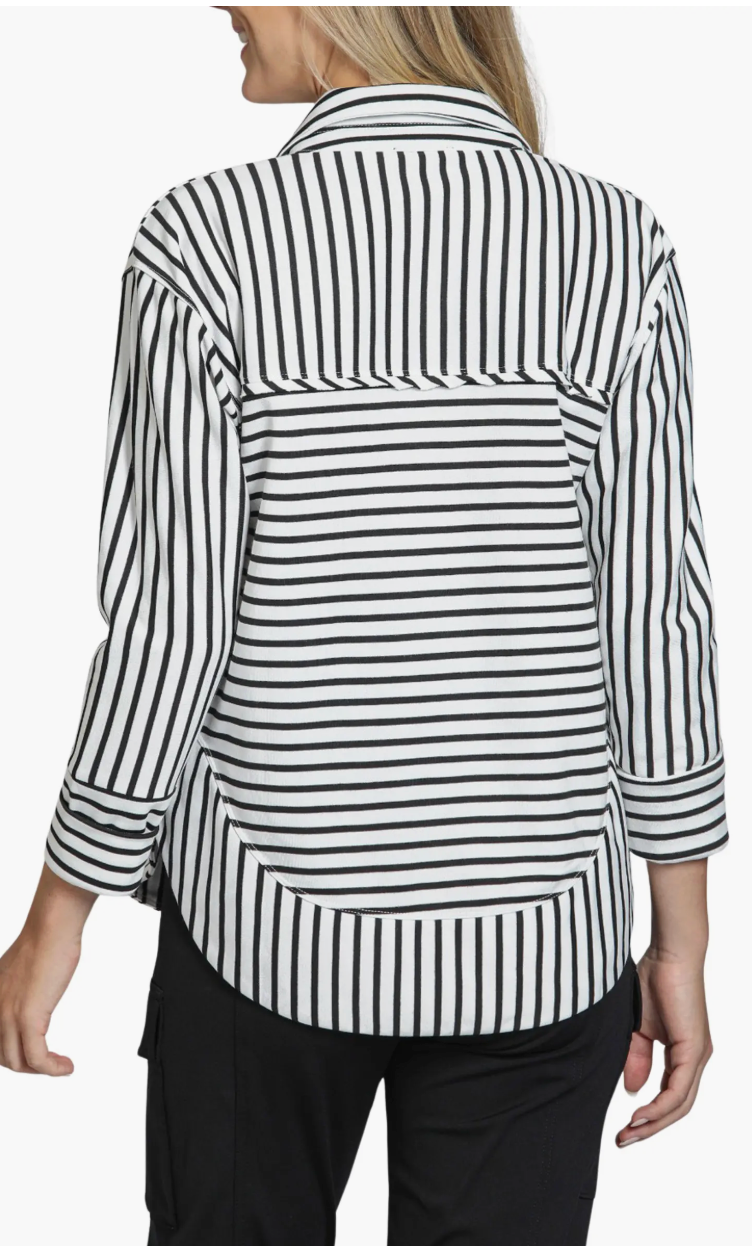 A fresh take on a henley top, this eye-catching version is made from woven cotton with a grommet placket, bold stripes and paneled construction.