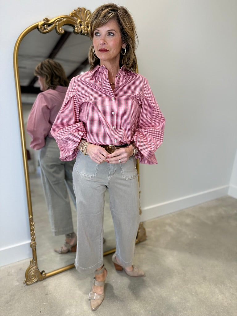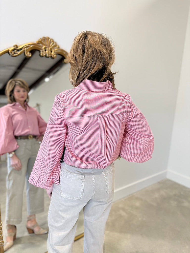 APNY Red & White Check Blouson Blouse.