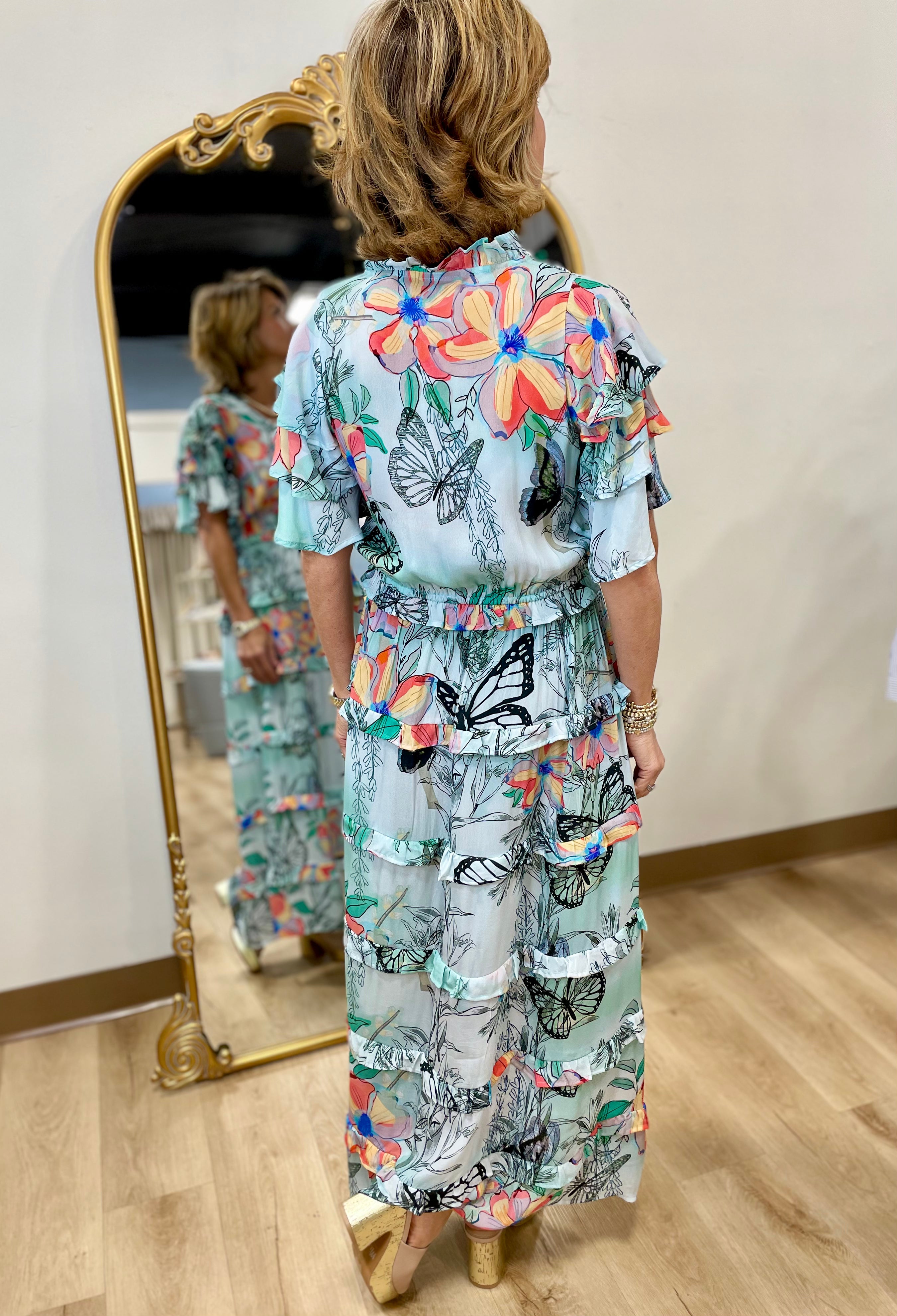 APNY Ruffle Tiered Short Sleeve Dress w Drawstring Waist Mint