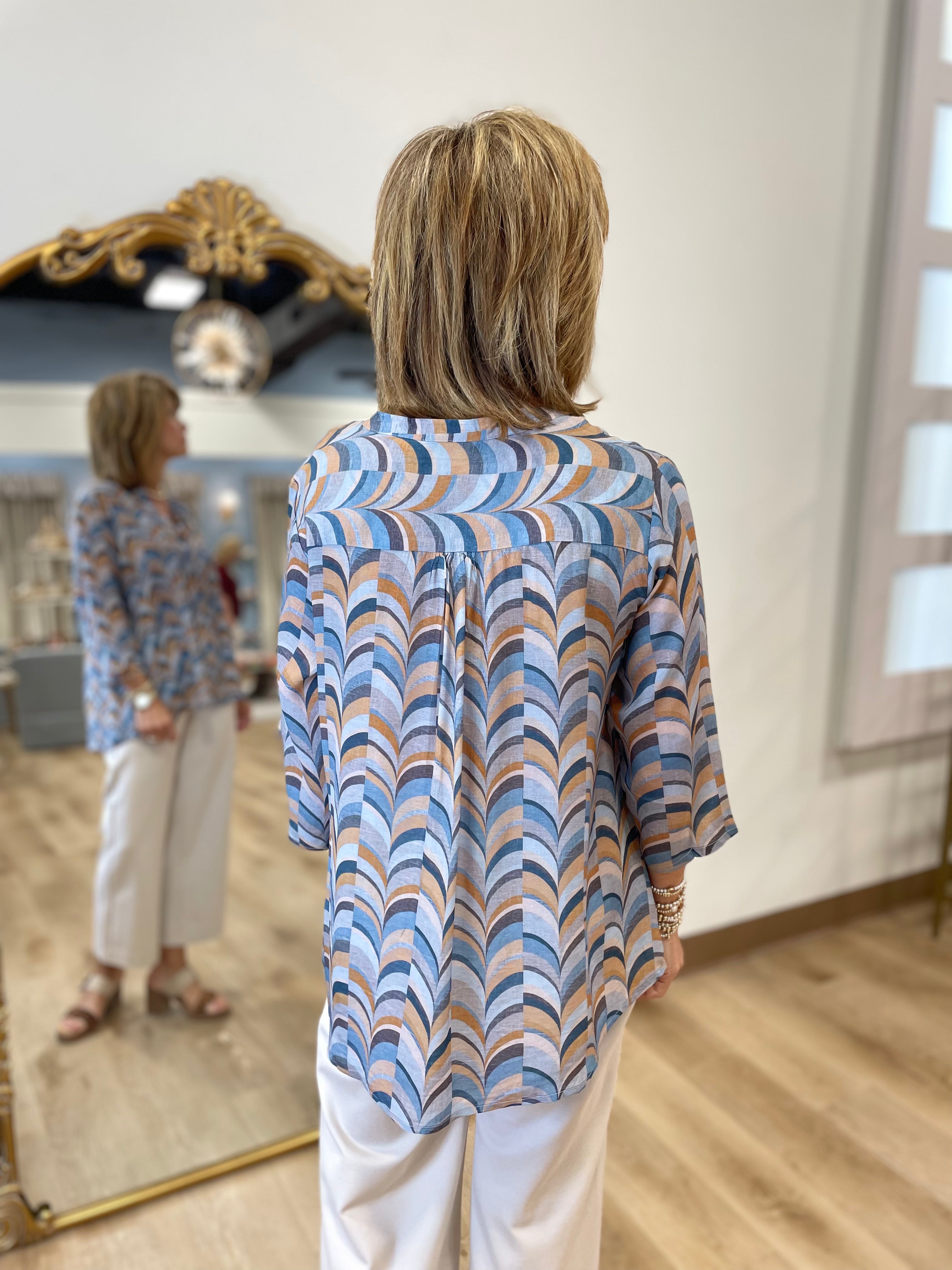 APNY V Neck w Tassel Steel Blue