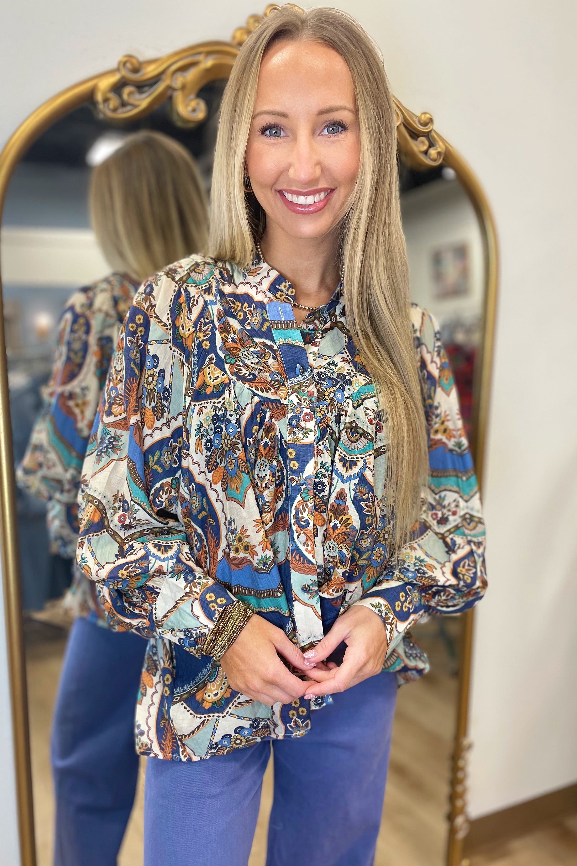 Azure Haze Button Front Blouse