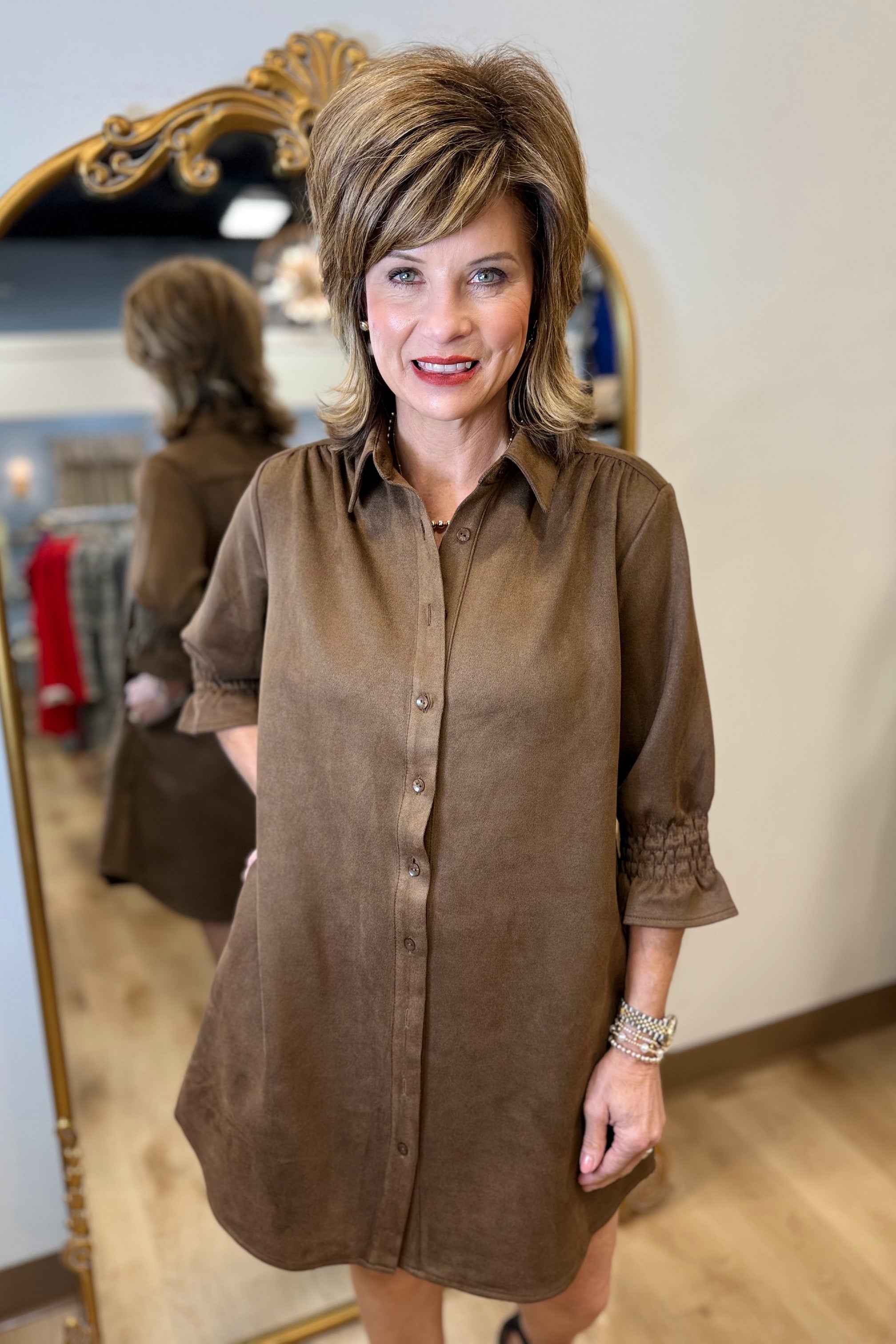 This dress is a staple in a versatile wardrobe, offering a blend of comfort and style.