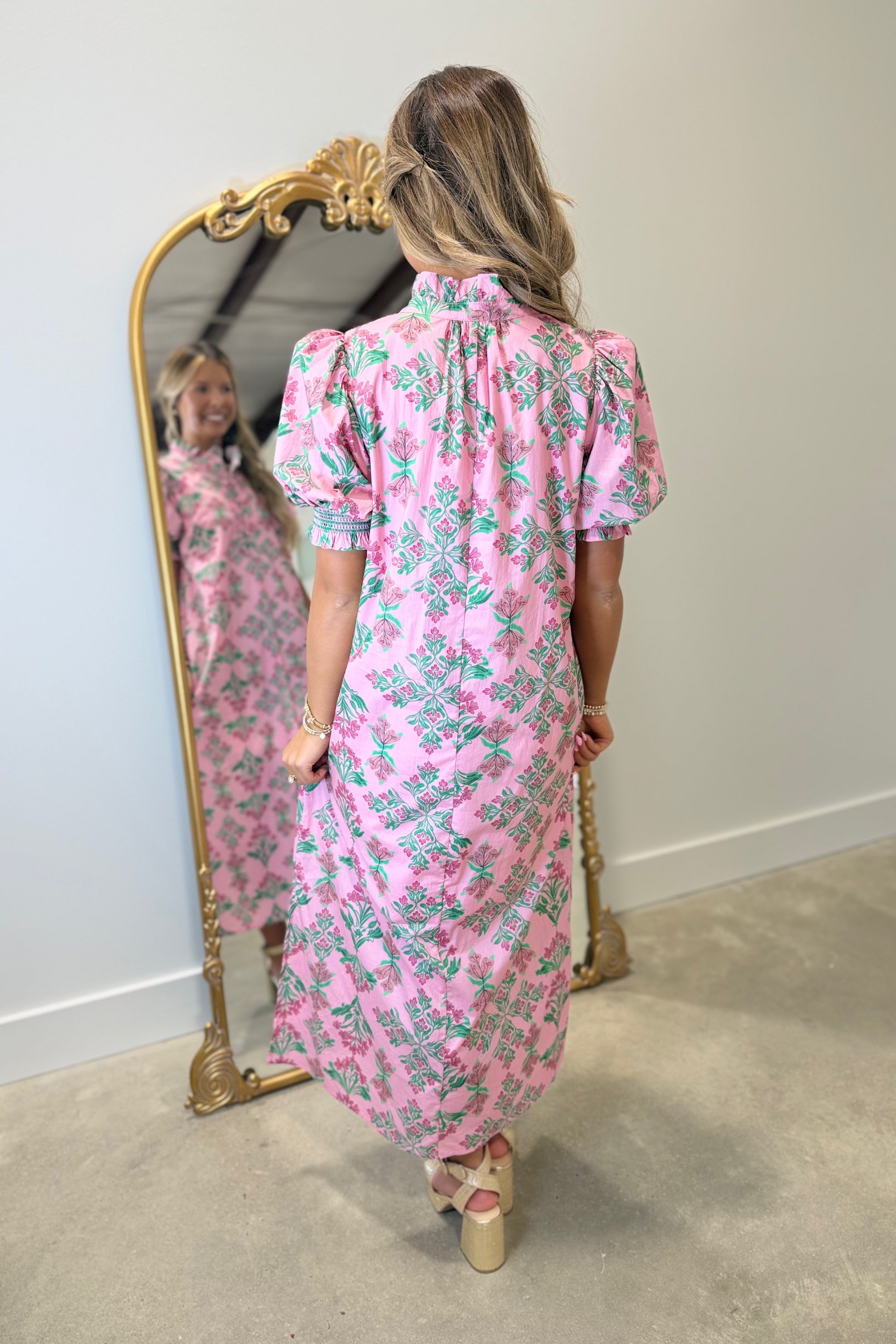 Bouquet Bliss Short Sleeve Midi Dress Pink.