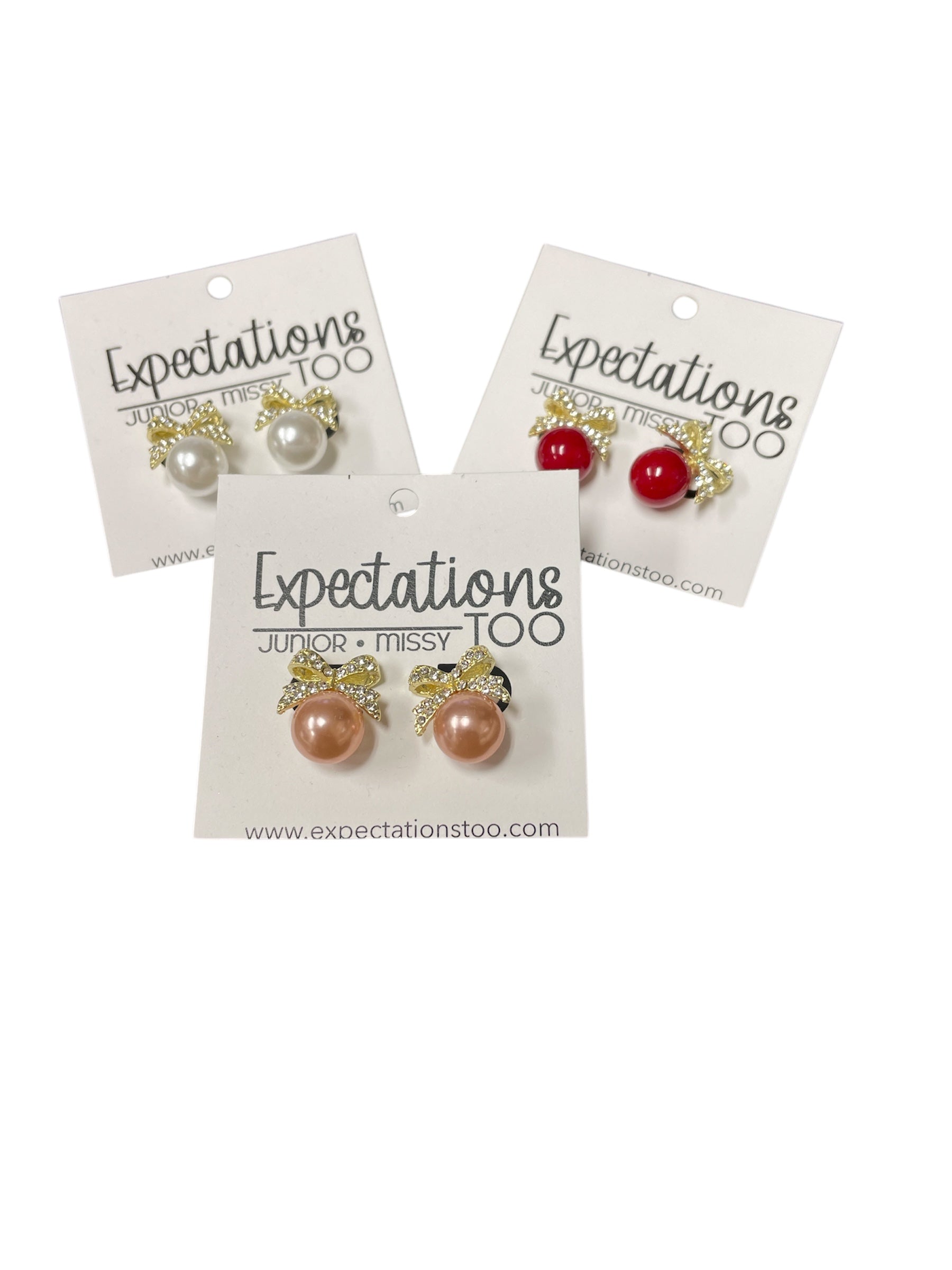 Bow Drop Post Earring 3 Colors Available - Pink, Red, White.