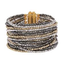 Over three luxurious yards of tiny, faceted crystals form our Angelina 18-strand bracelet. A supple and luxurious cuff-like bracelet is pure glamour for your wrist in shades of blue gold, silver; and hematite or gold; copper, and bronze. These classic shades will highlight and enhance many pieces in your wardrobe, making our Angelina bracelet indispensable for a statement wristscape. Day or night reach for your Angelina, keeping in mind that it is imbued with a little angel energy. Handcrafted in Rajasthan, India, exclusively for BuDhaGirl.