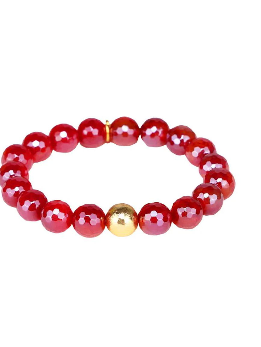 Our Melange beaded bracelets are perfect for a pop of Holiday color. Amazing with Gold or Silver AWB. Our Melange bracelets come in a new scarlet color, a classic brushed gold bead finishes the bracelet making it softly sparkle on your wrist.