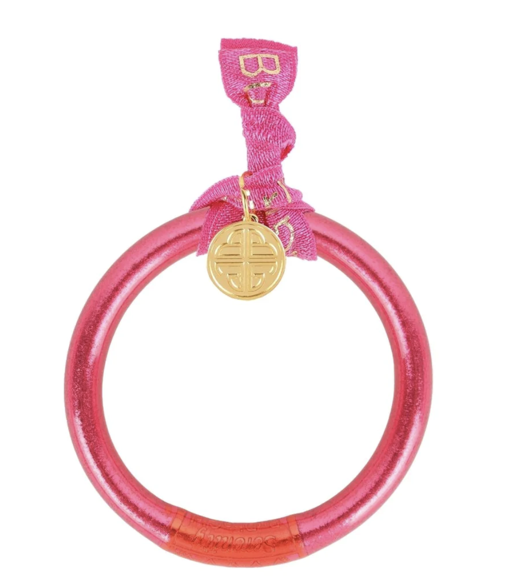 Each Tzubbie Pink All Weather Bangle bracelet is made by a team of 20+ artisans, each bangle is handmade, each is a labor of love. AWBs are made with organic products, at times a slight color differentiation might occur, this is only natural as humidity and temperature conditions do affect the outcome. Our Serenity Prayer Bead is made with uncoated brass which as time goes by, might develop a verdi-gris patina. Our point is that Tzubbie Pink All Weather Bangle bracelet is a product that will age, develop character, and will remain beautiful...just like our BuDhaGirls.
