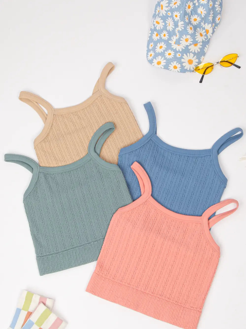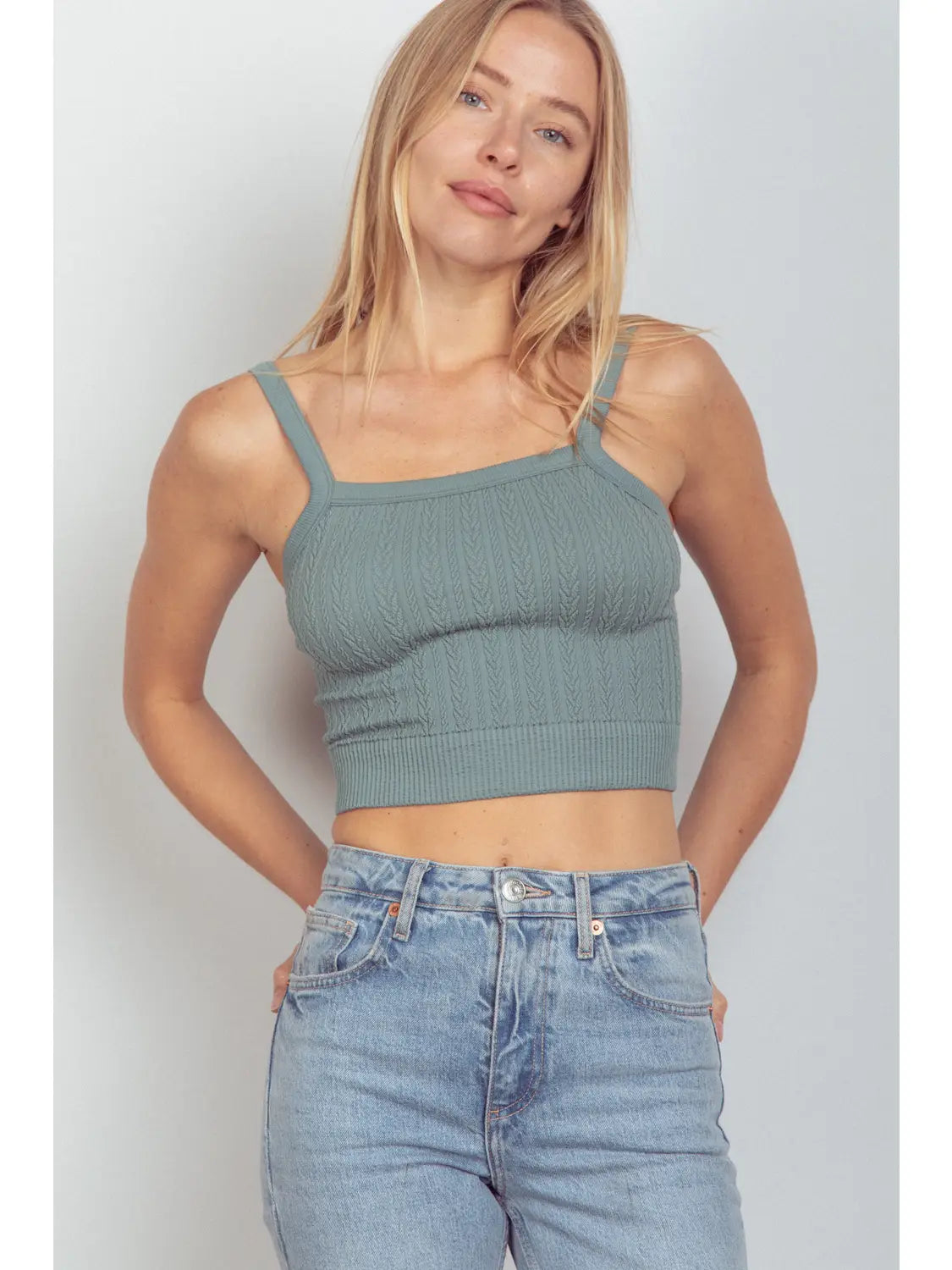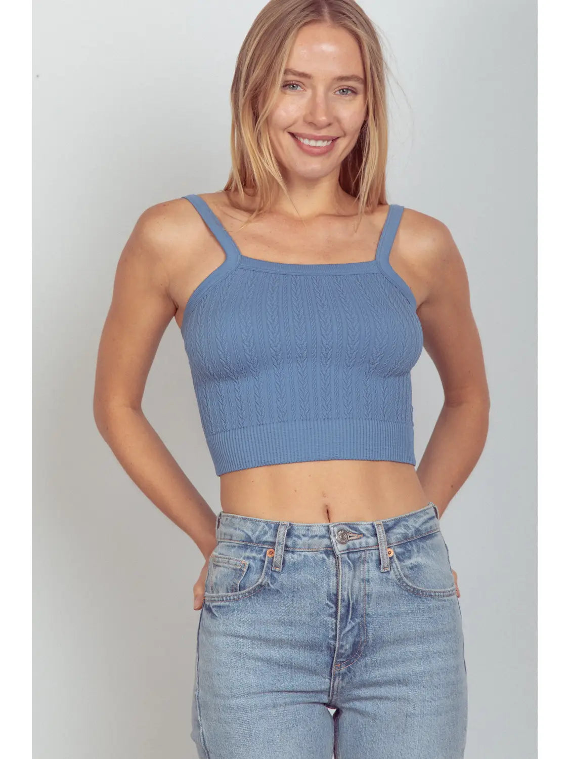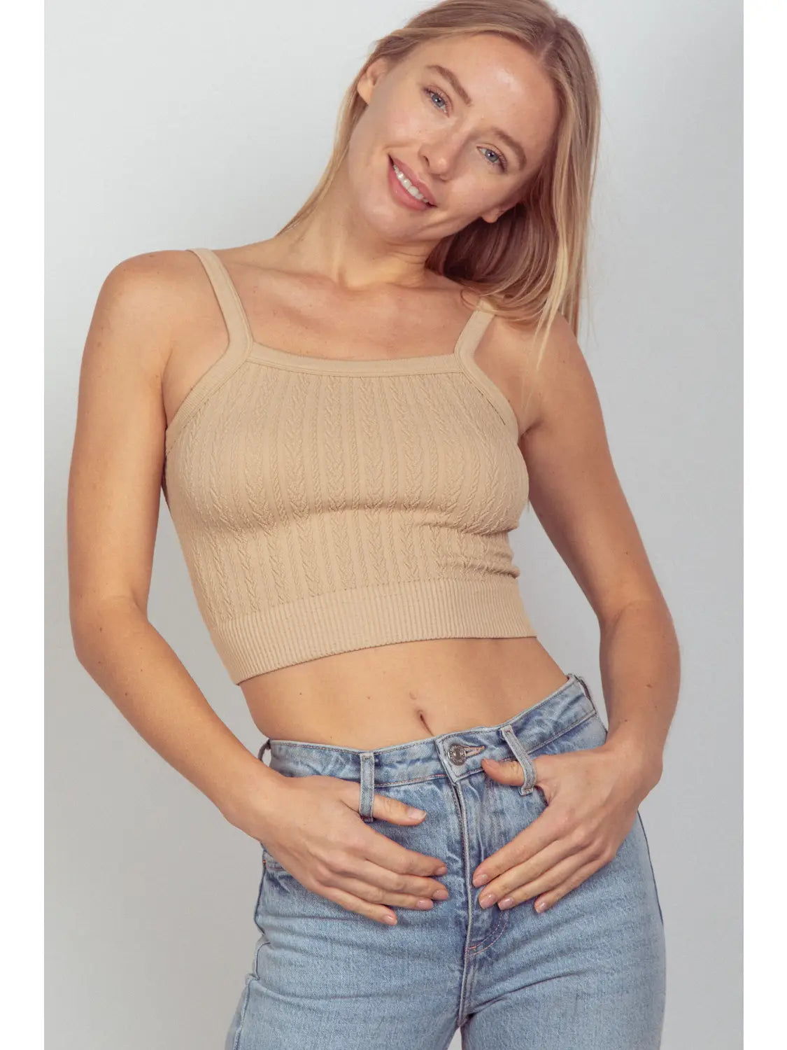 Cable Ribbed Fitted Crop Knit Tank Top Blush, Denin, Nude, Sage