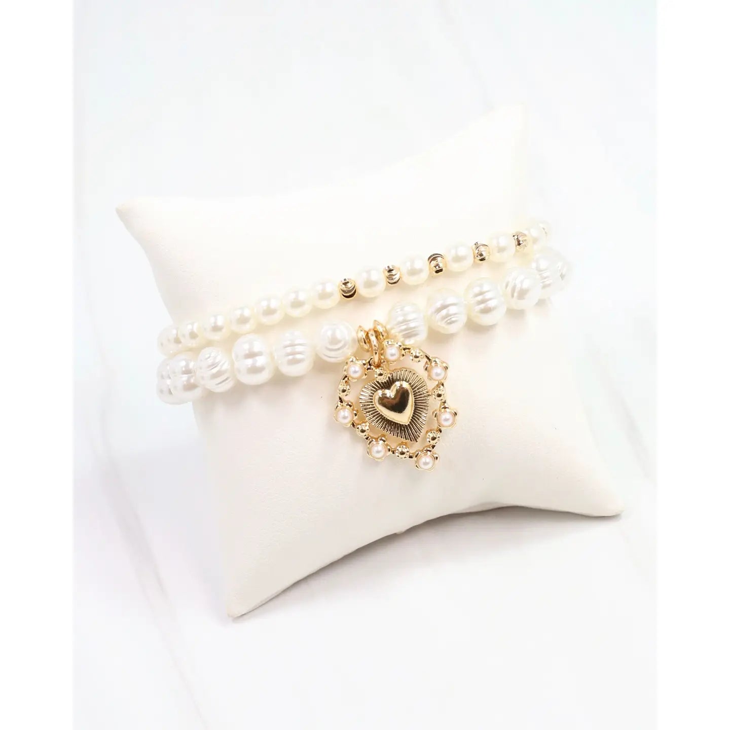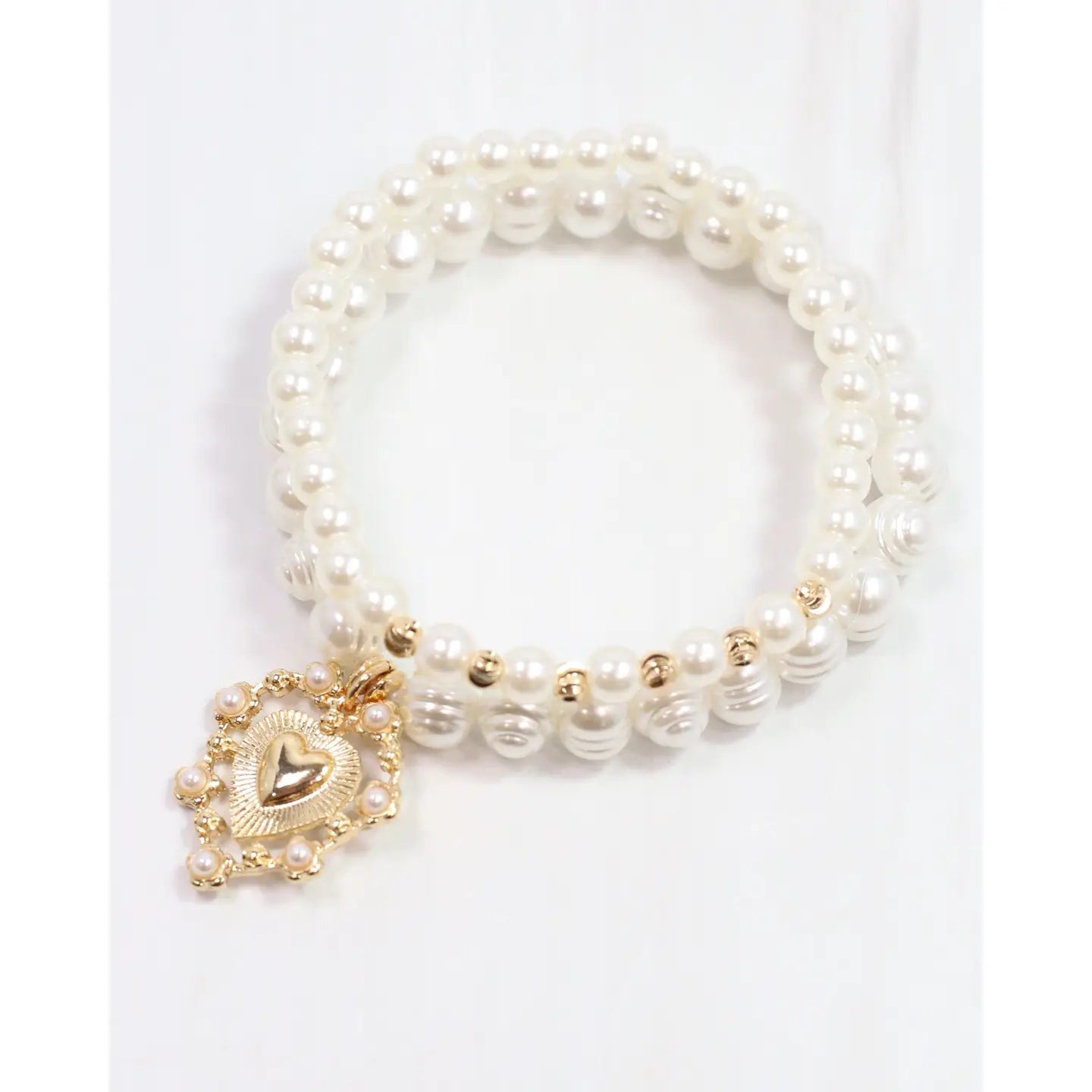 Add a touch of elegance with the Emel Pearl Stretch Bracelet Set! Featuring lustrous pearls and a textured heart charm, it’s both chic and comfortable. Perfect for stacking or wearing solo, this piece effortlessly blends classic beauty with modern flair, making any outfit shine. Dimensions: * Stretch- fits most wrists