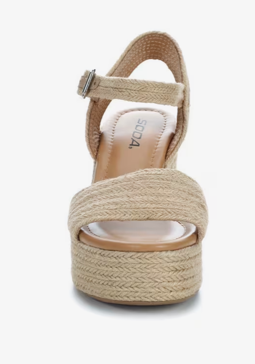 Step into summer with the Women's Soda Castle-S Espadrille Heeled Dress Sandals! Featuring a stylish strappy design with a buckle closure, these sandals offer a secure and adjustable fit, while the espadrille-wrapped heel brings a fun, beachy vibe. Whether you're dressing up or down, these versatile sandals will elevate your look with a perfect blend of comfort and chic!