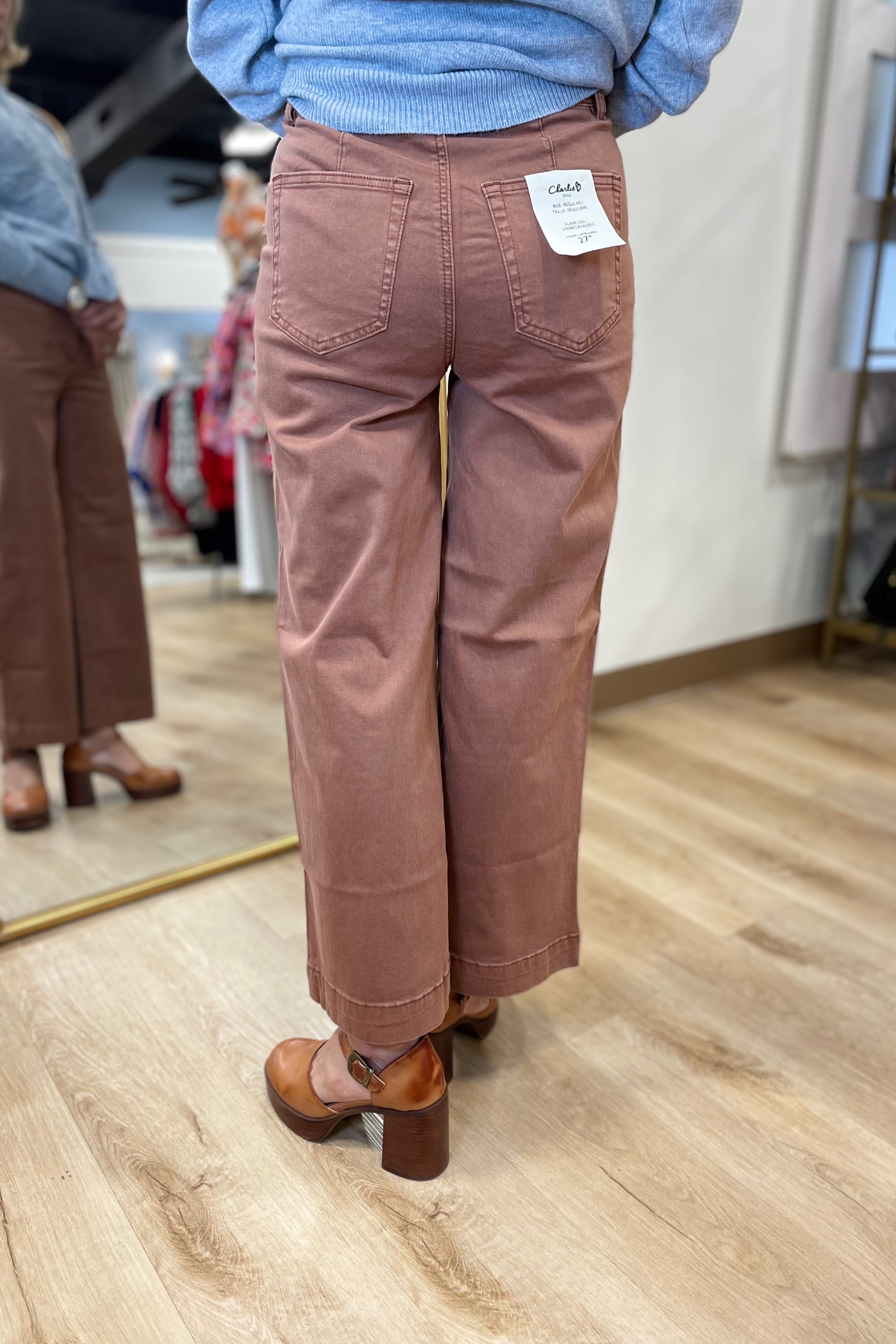Charlie B Cropped Patch Pocket Flare Jean Sepia