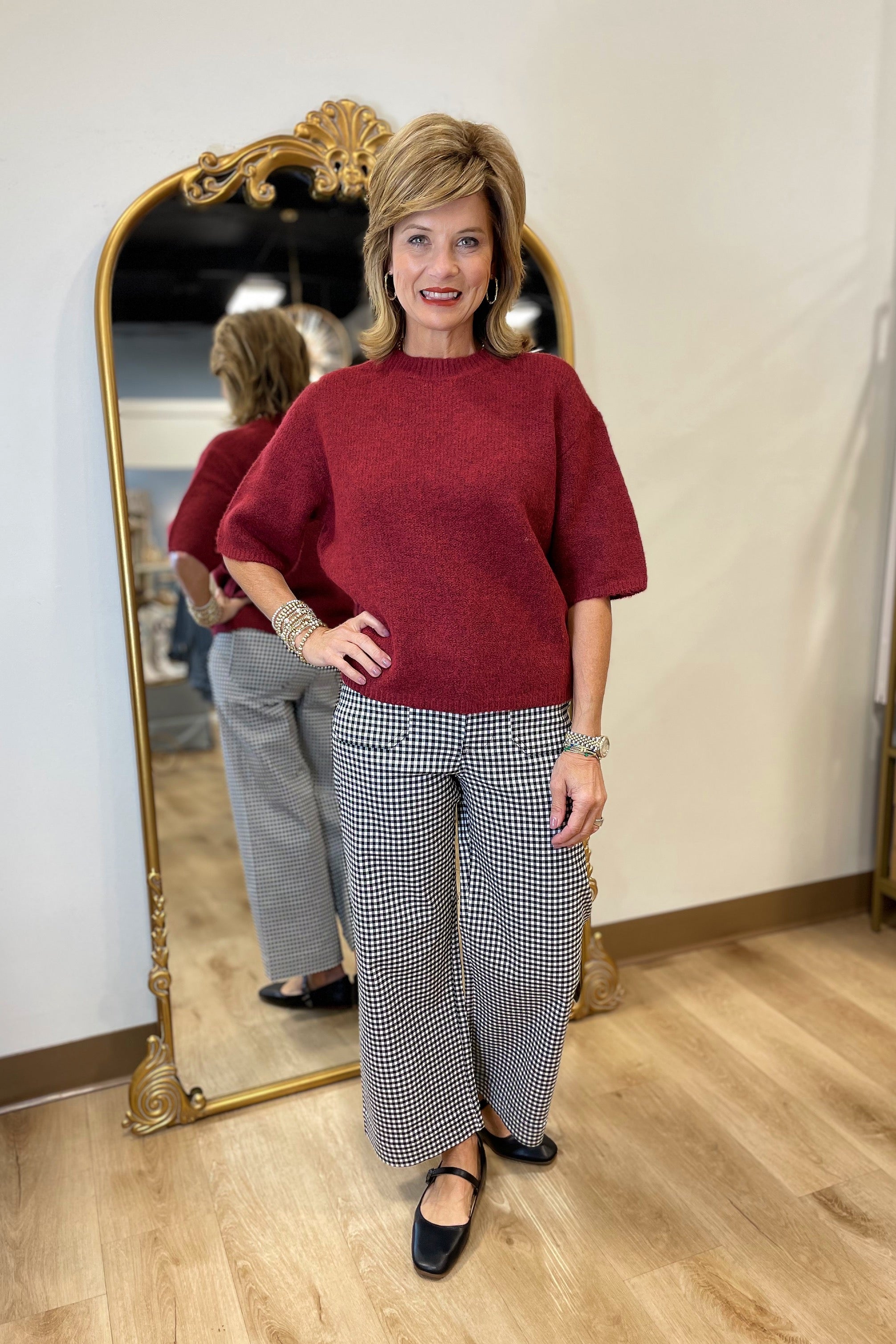 Charlie B Elbow Sleeve Balloon Shape Sweater Cabernet