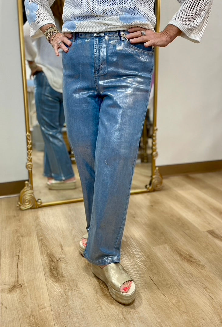 Charlie B Foil Straight Leg Pant Bleach Blue.