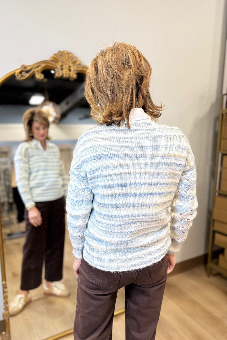 Charlie B Lurex Space Dye V-Neck Sweater Blue