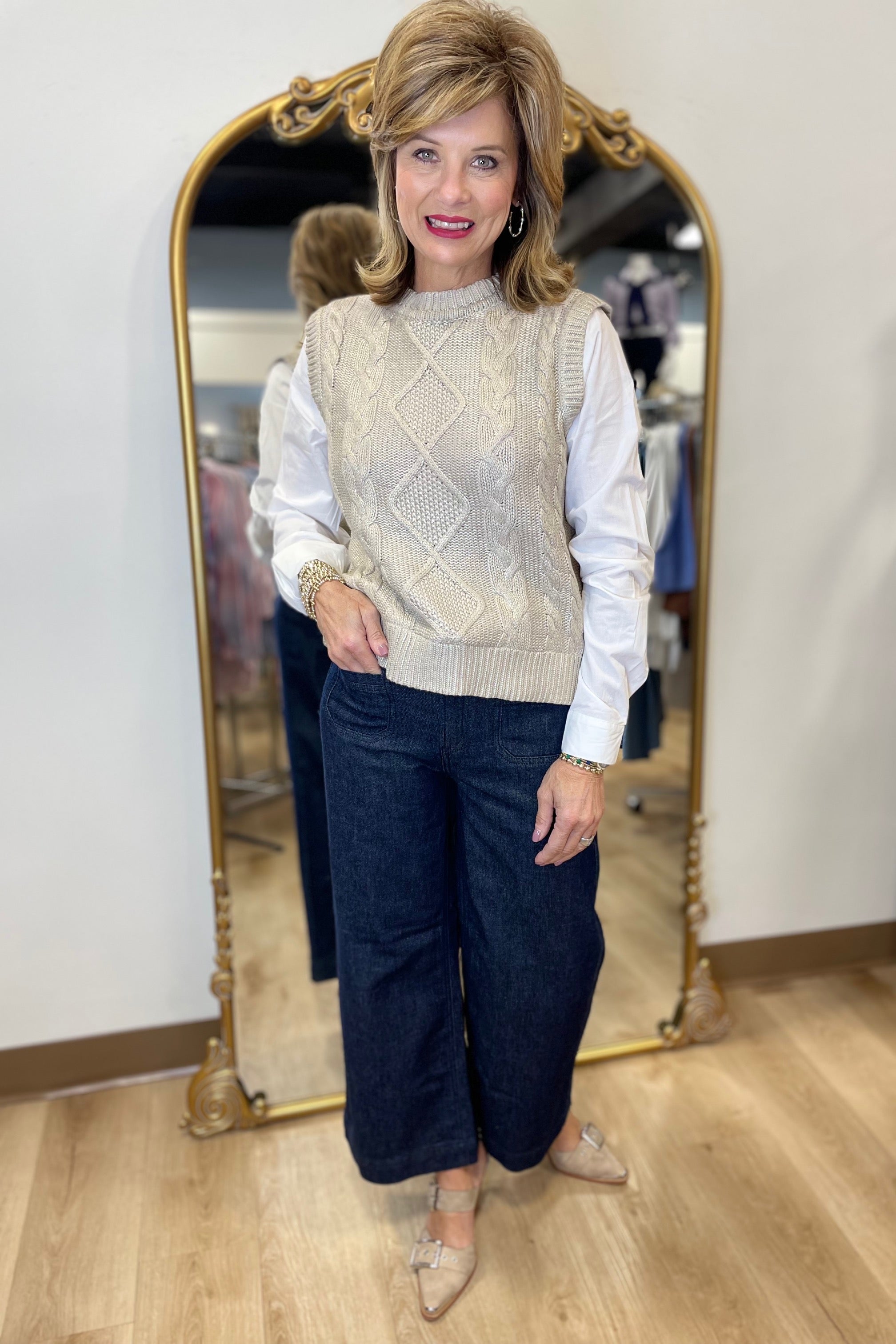 Show off your style with our blue black Metallic Patch Pocket Flare Jeans. The slight stretch in these jeans means you get comfort alongside fashion. Featuring a cropped flare leg and a regular rise, they offer a flattering silhouette. The patch pockets give them a contemporary flair, making them ideal to wear with your favorite tops and boots for a stylish fall look.