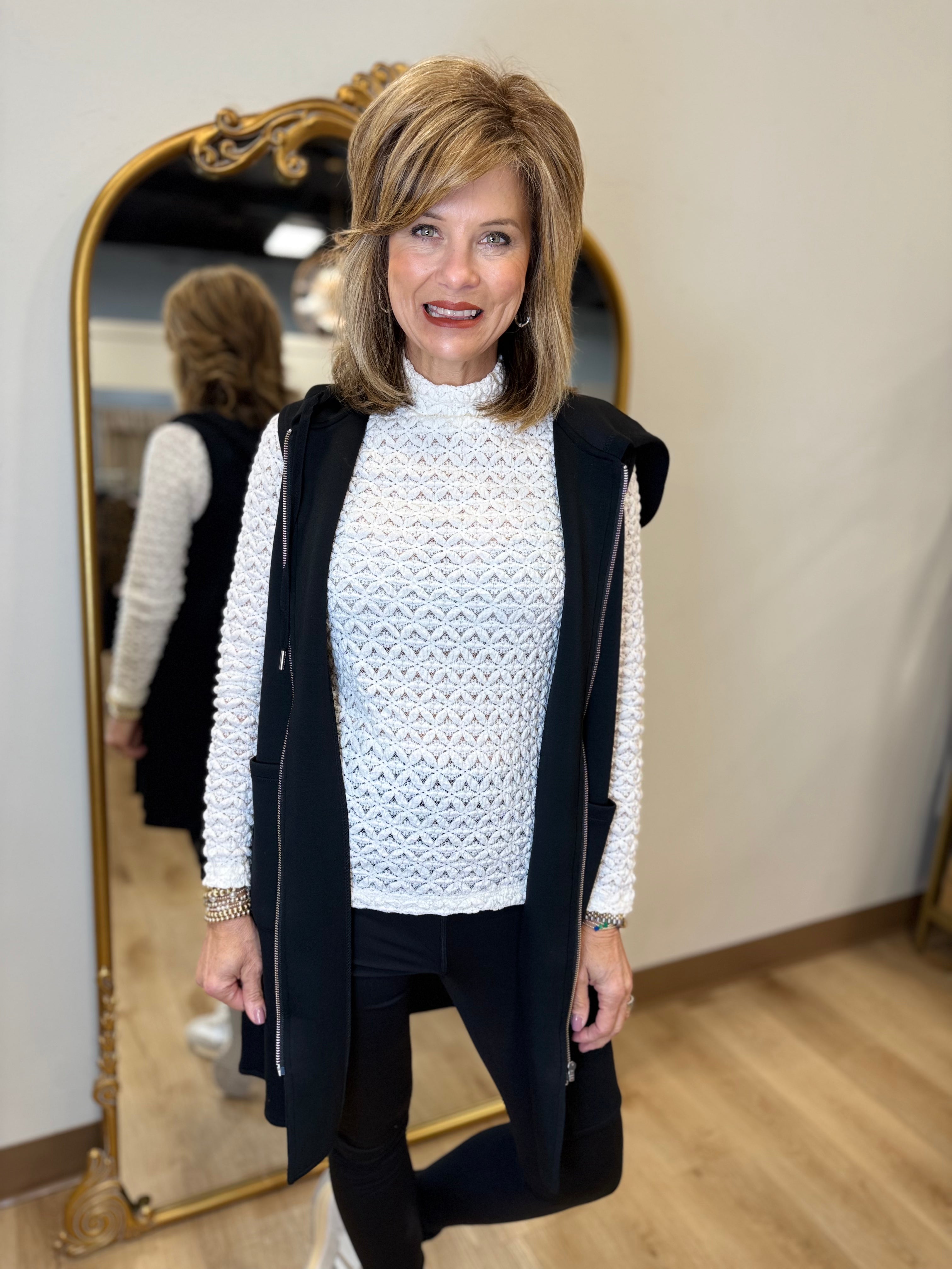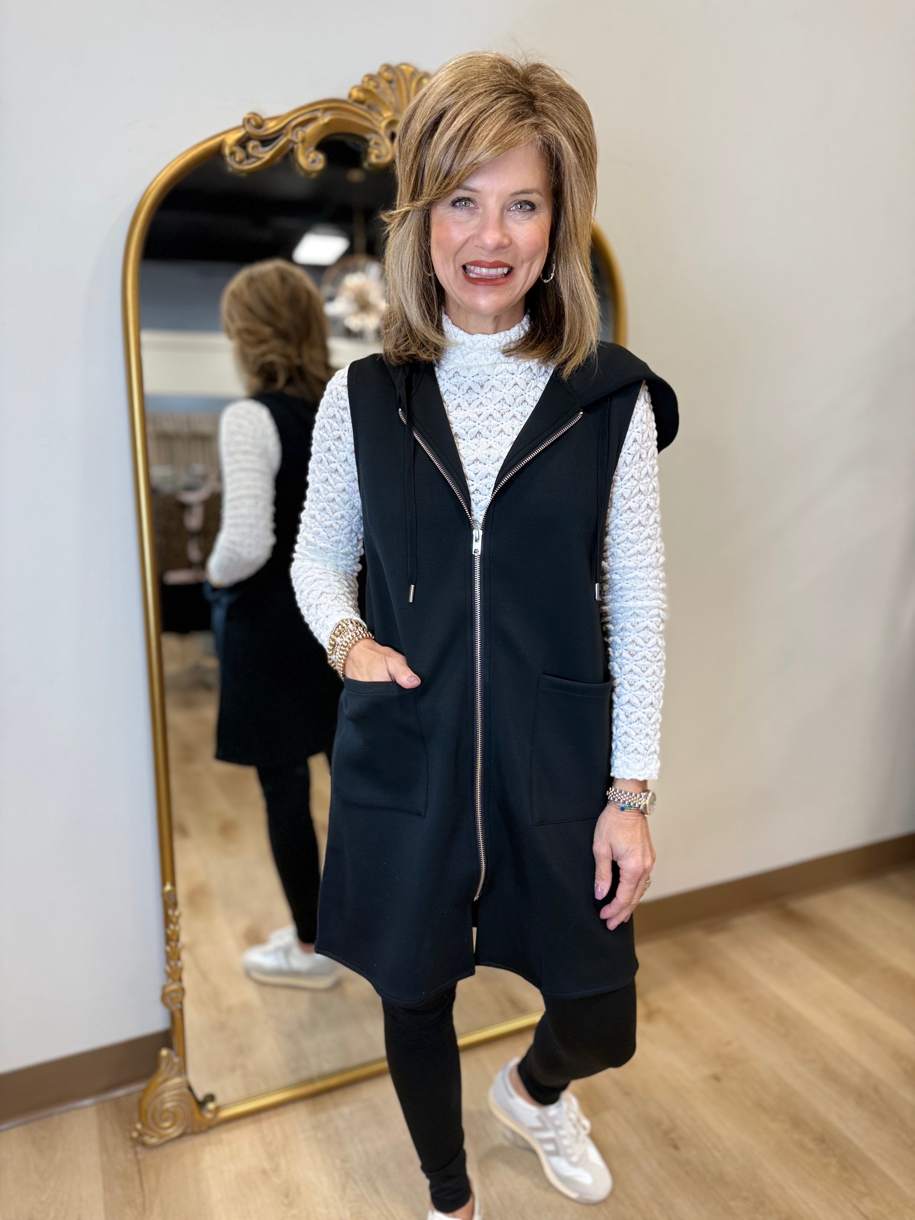 refresh your wardrobe in style. It's great for layering, thanks to the stretchy fabric and modern zip front. With practical patch pockets and a hood with drawstrings, it combines style with convenience.
