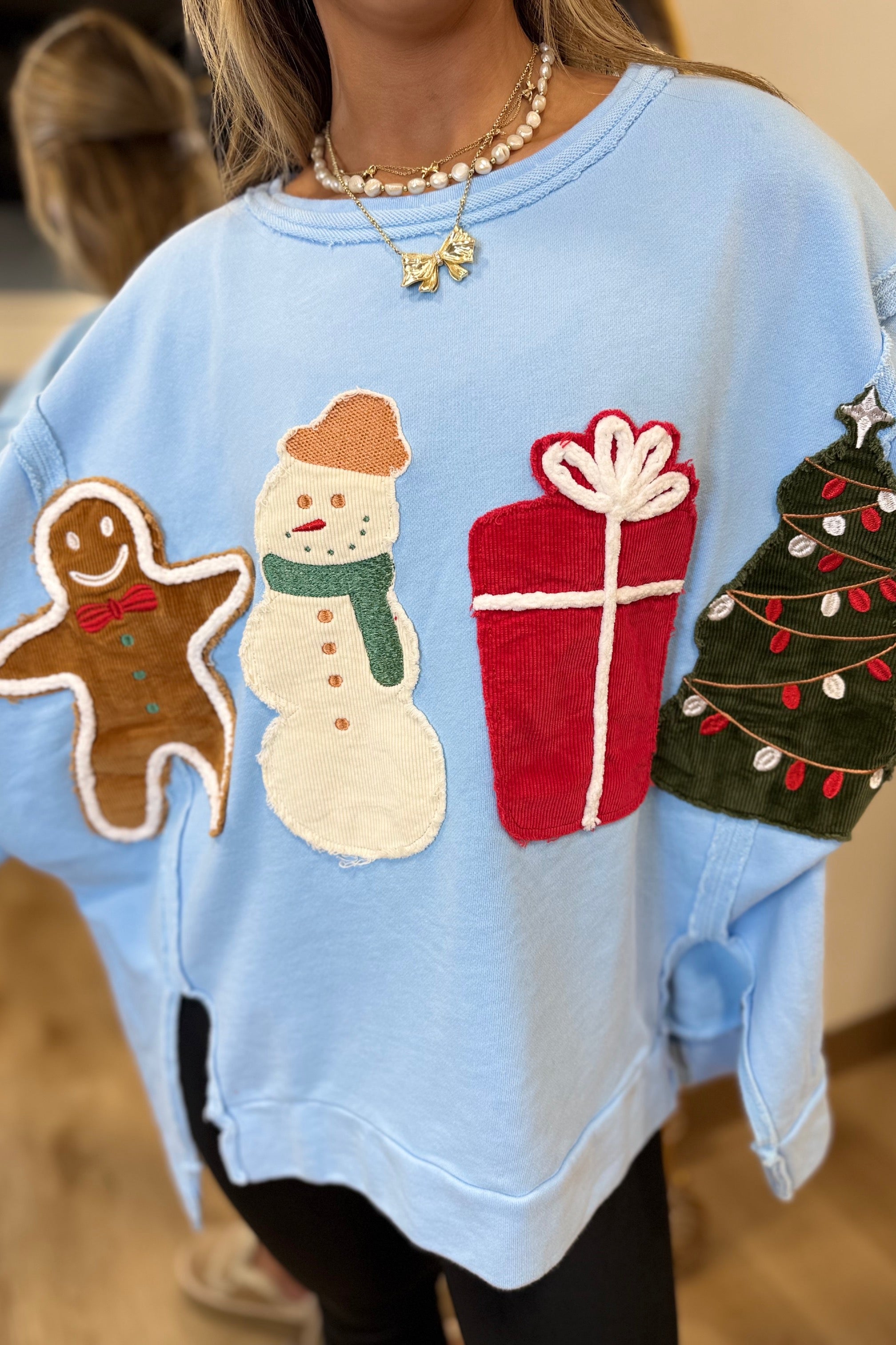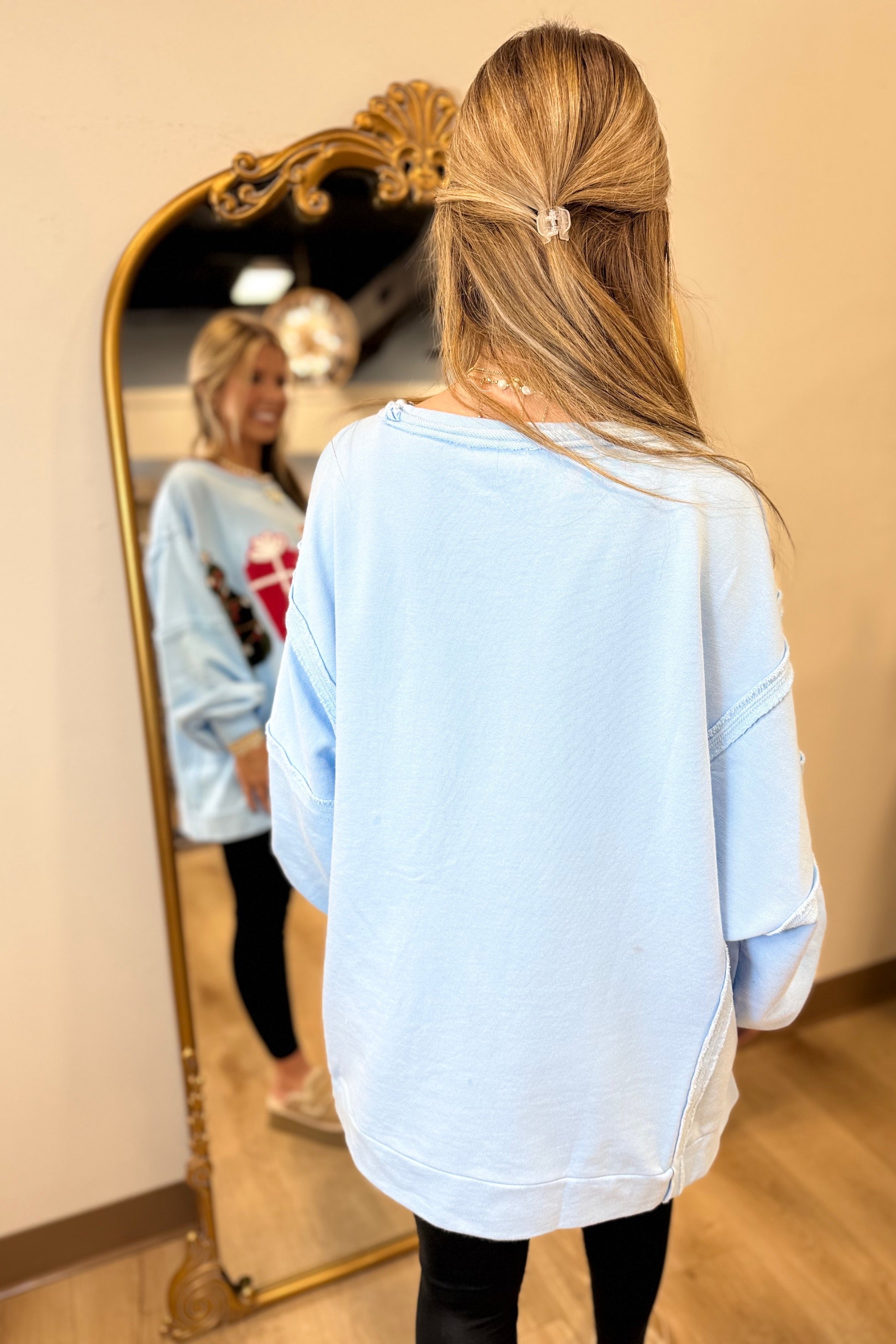 Christmas Cheer Oversized French Terry Patch Sweatshirt Blue