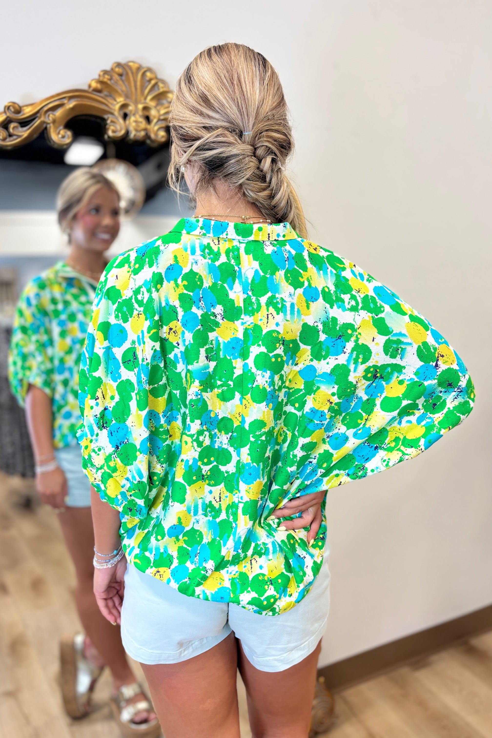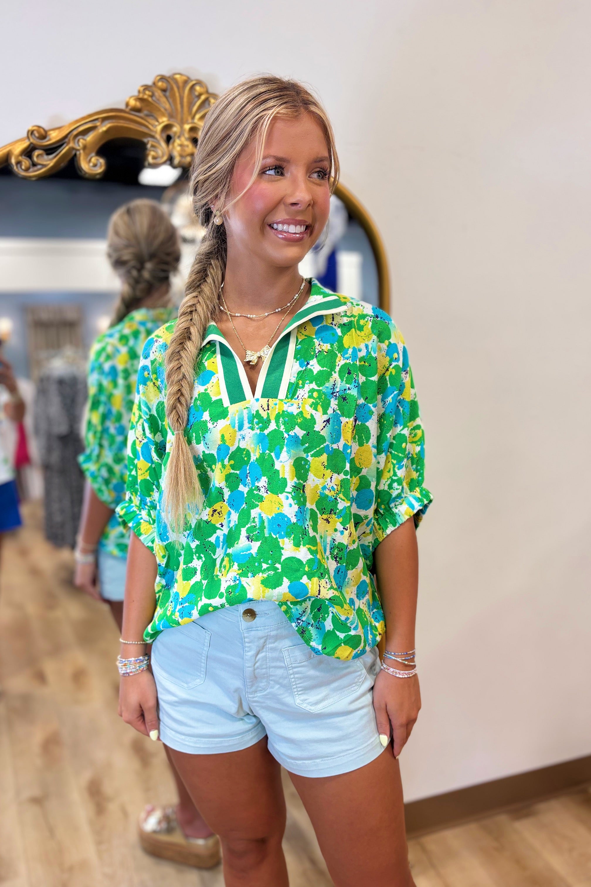 Color Burst Top Green