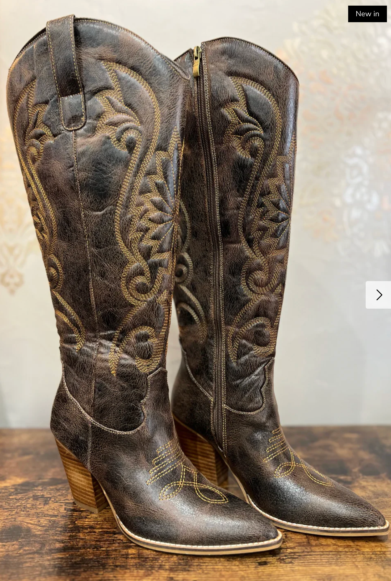 Looking for the Perfect Western Boot for Concerts or Rodeos that will Turn Heads and Keep you Corkys Comfortable? It's Here, in Limited Supply! Hey Girl by Corkys "Long Live Cowgirls" Espresso Crinkle Tall Western Style Boots, the Comfiest Boots you will own! The Espresso Crinkle Color is the has the Perfect Aged and Worn Neutral Look to pair with any outfit, Jeans or Dresses! Long Live Cowgirls features a Pointed Toe, Gorgeous Western Stitching on the Toe and Upper, Outside Pulls, Soft Padded Calf Shaft, 3" Heel Height, as well as the Famous Corkys Soft Memory Foam Insoles for all day Comfort, and a Full Inside Zip Closure. Limited Sizes Available in Espresso Crinkle in whole sizes only 7-11.