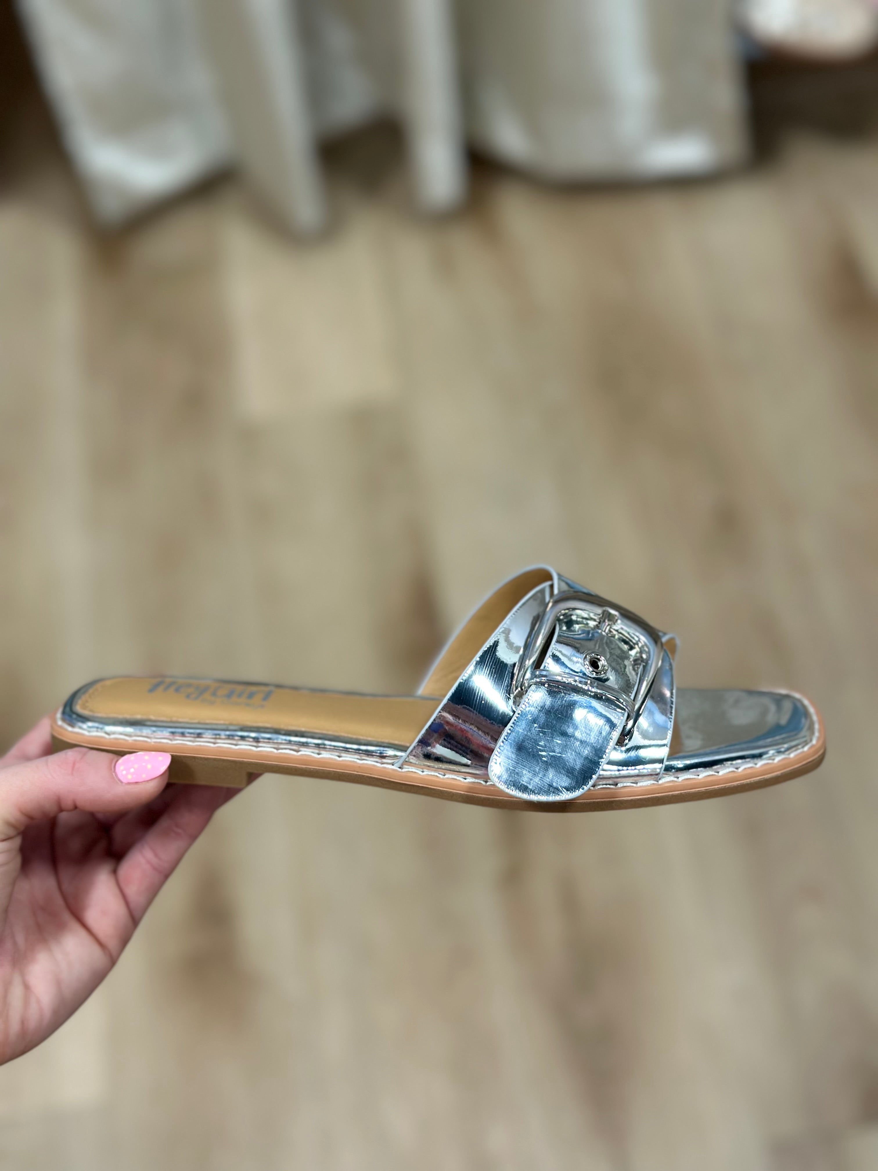 Corkys Pick Me Up Slide Sandal Silver Mirror Metallic