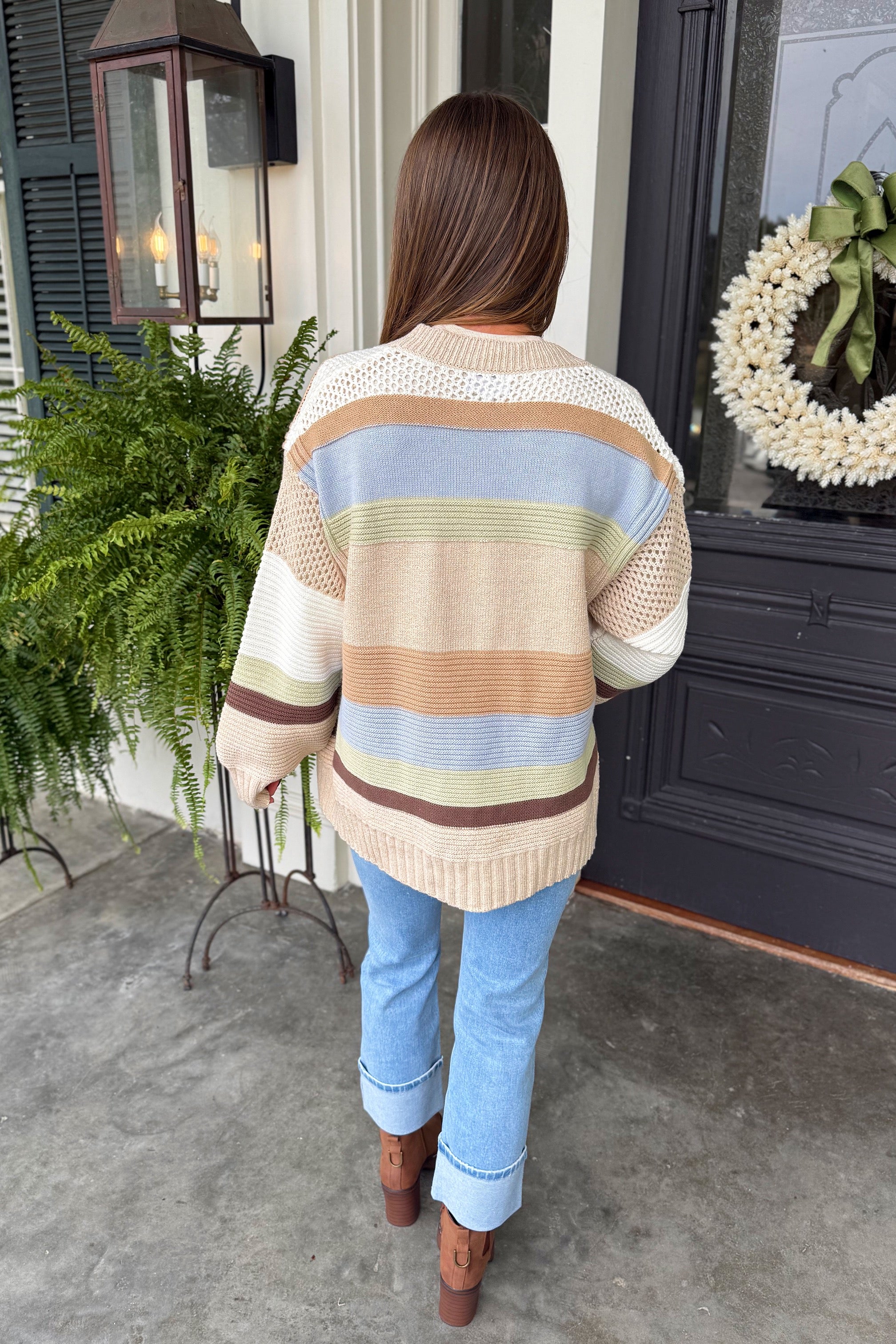Crisp Leaves Striped Cardigan Sand Beige
