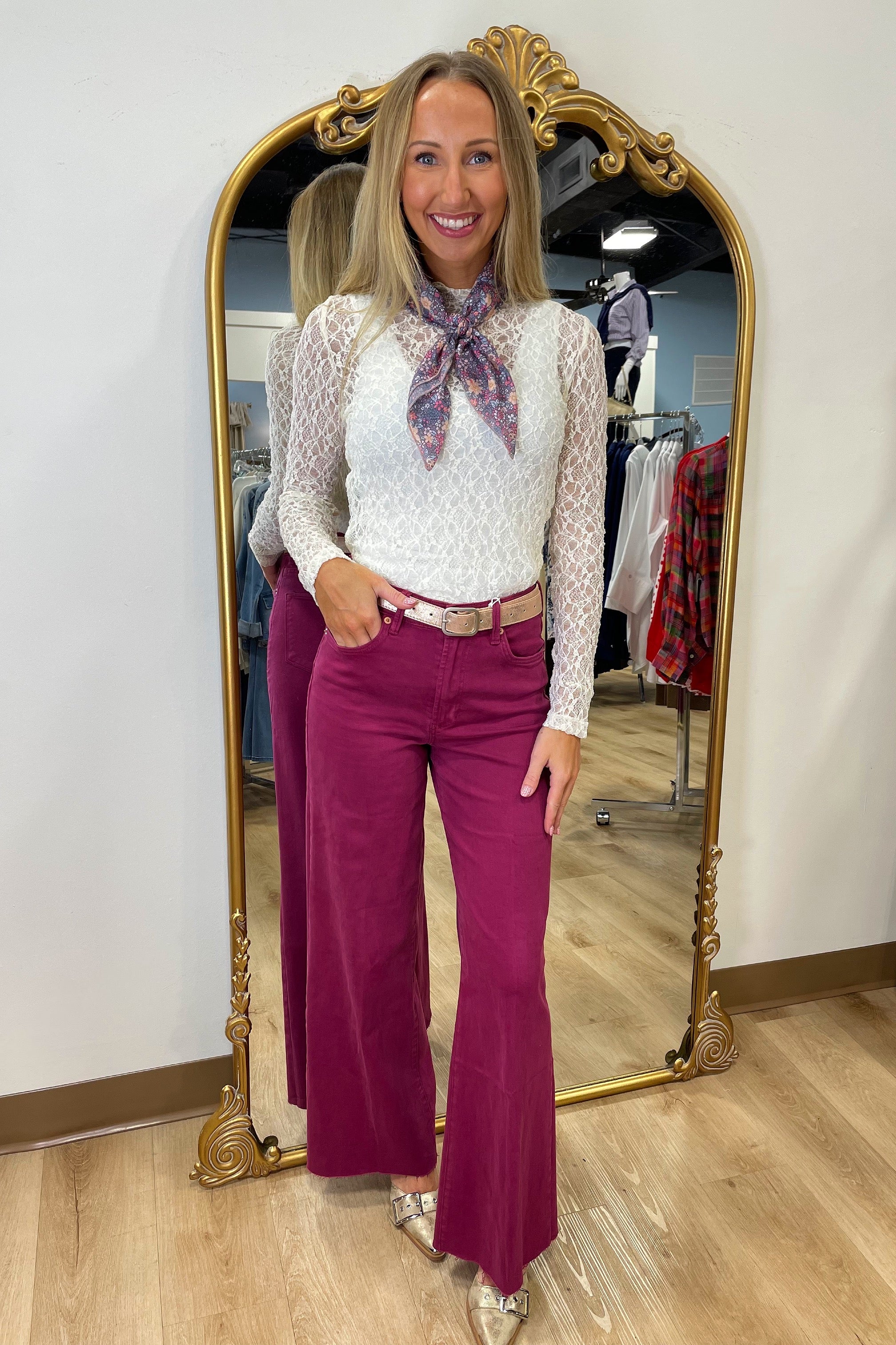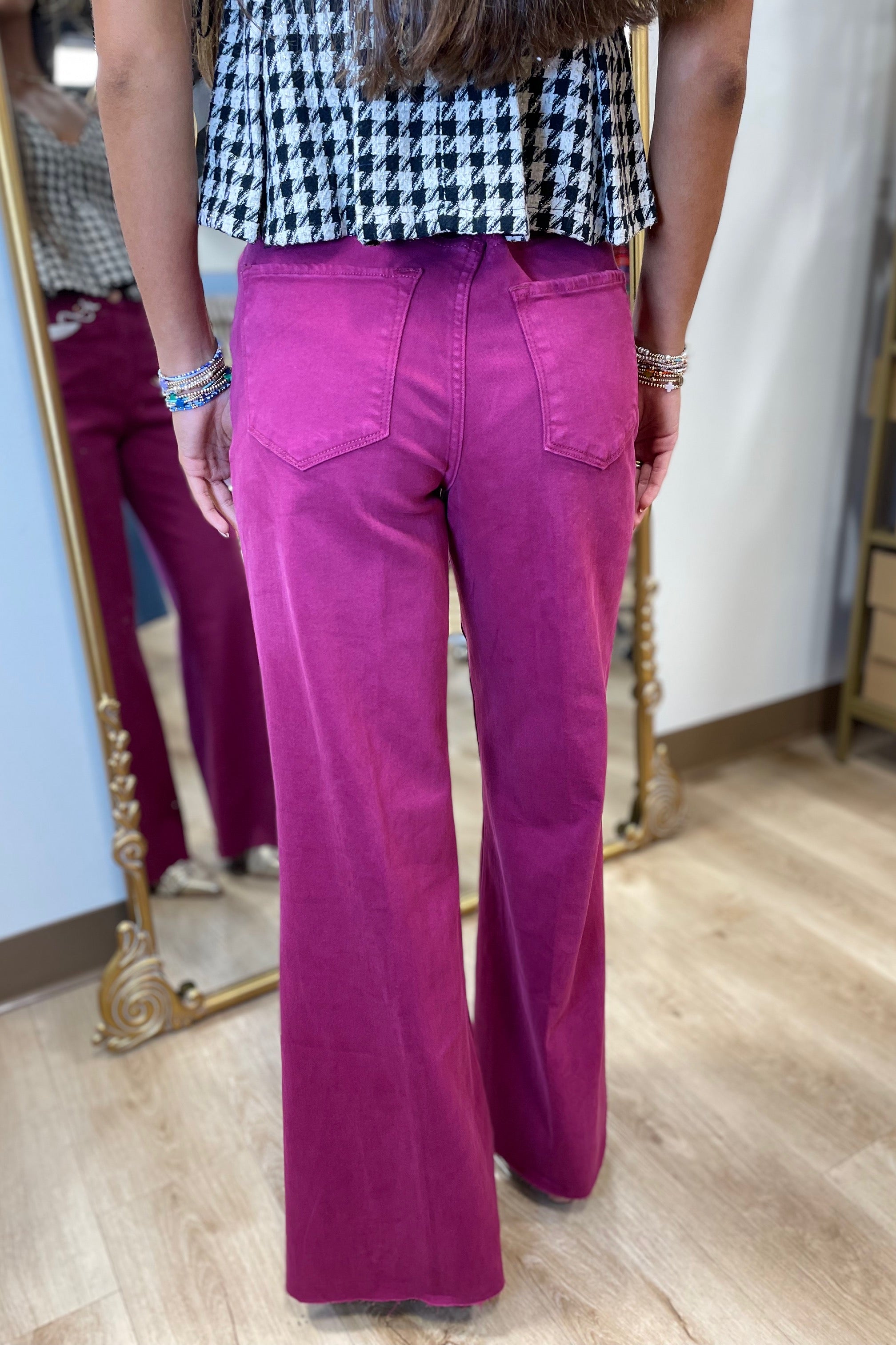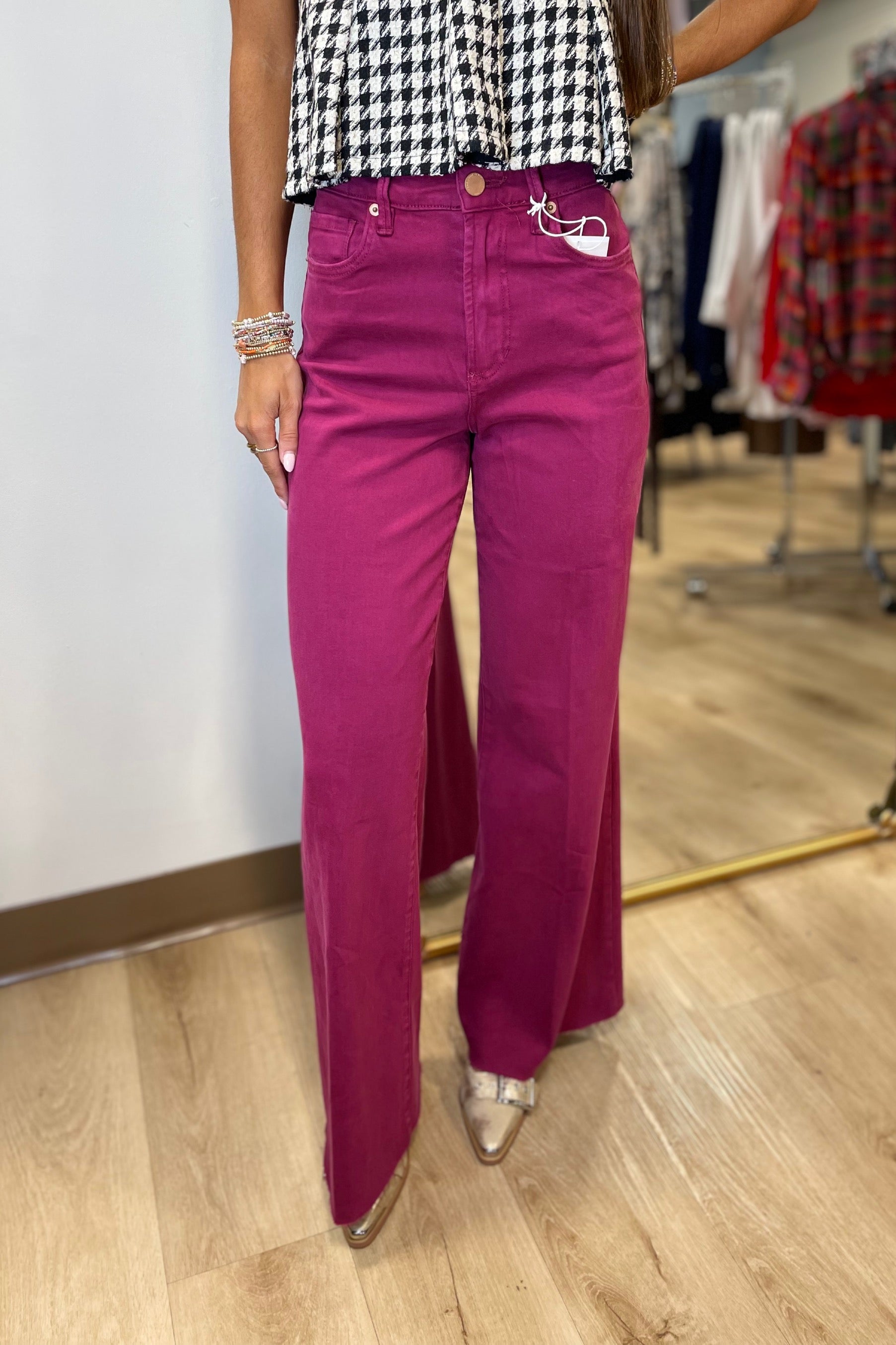 Effortless utility with the Fiona wide leg jean Beaujolais.