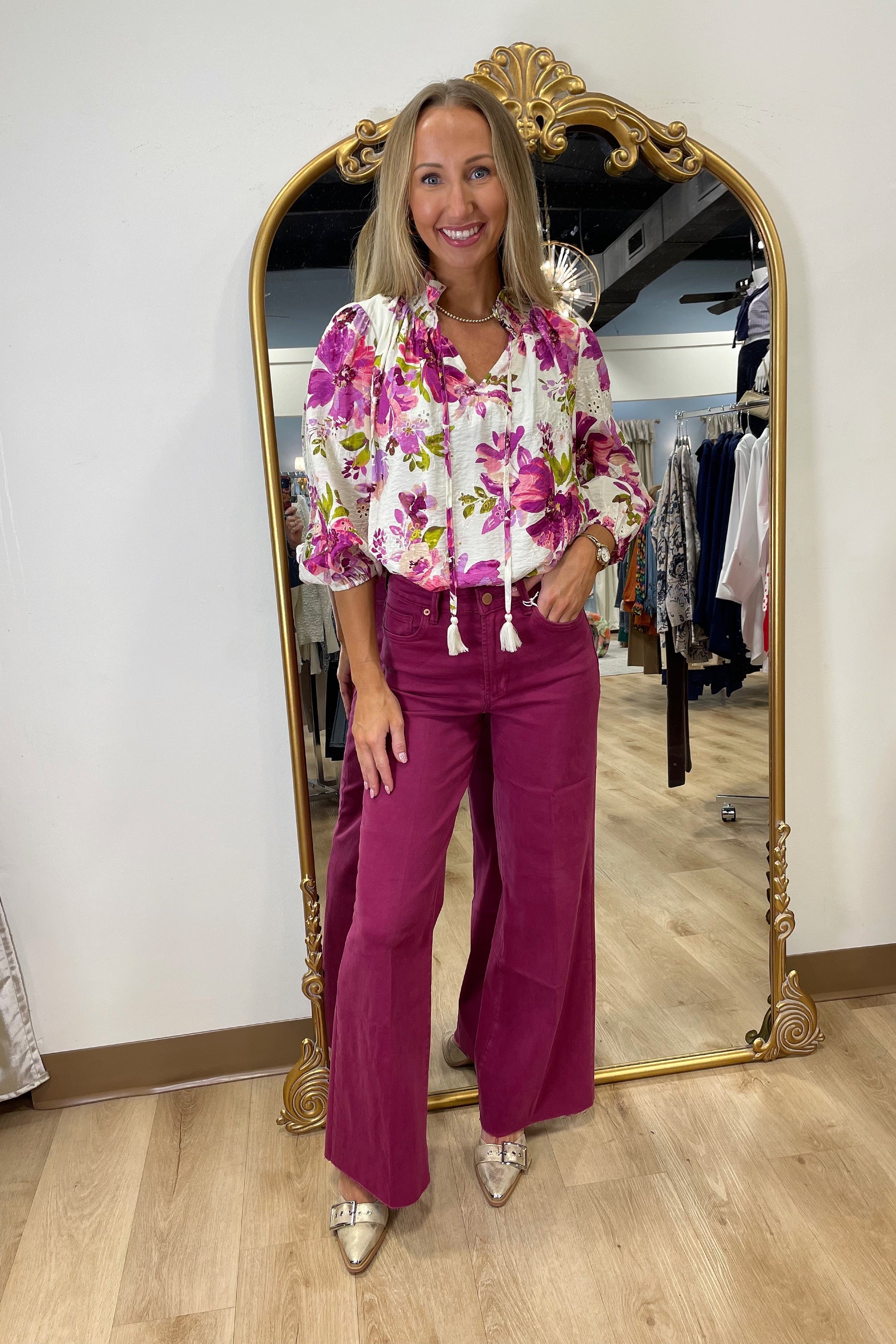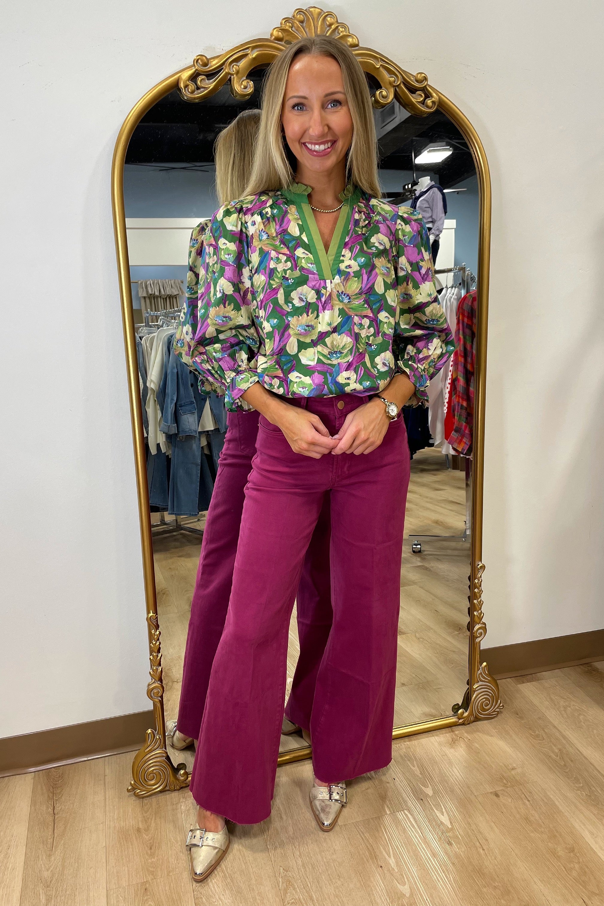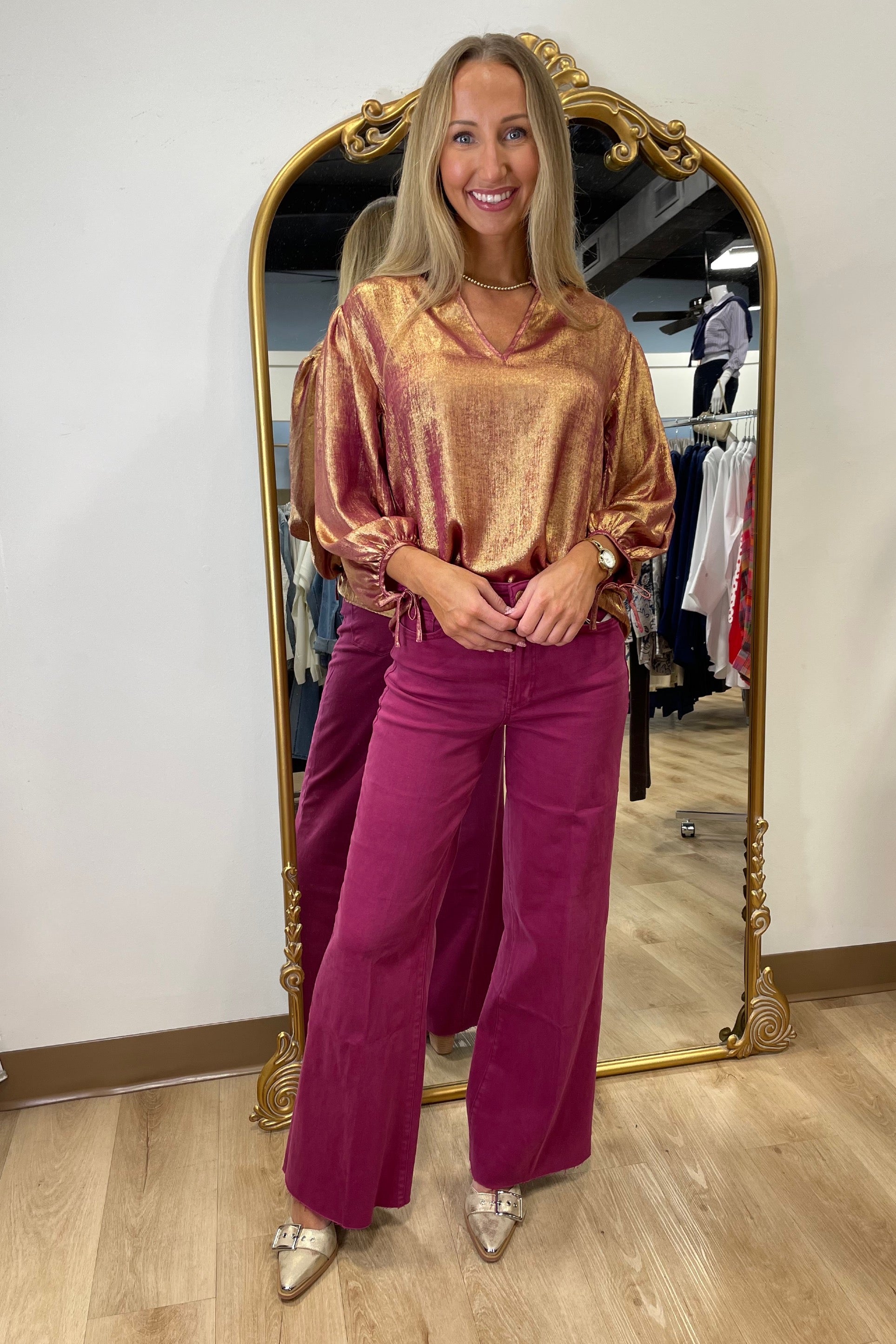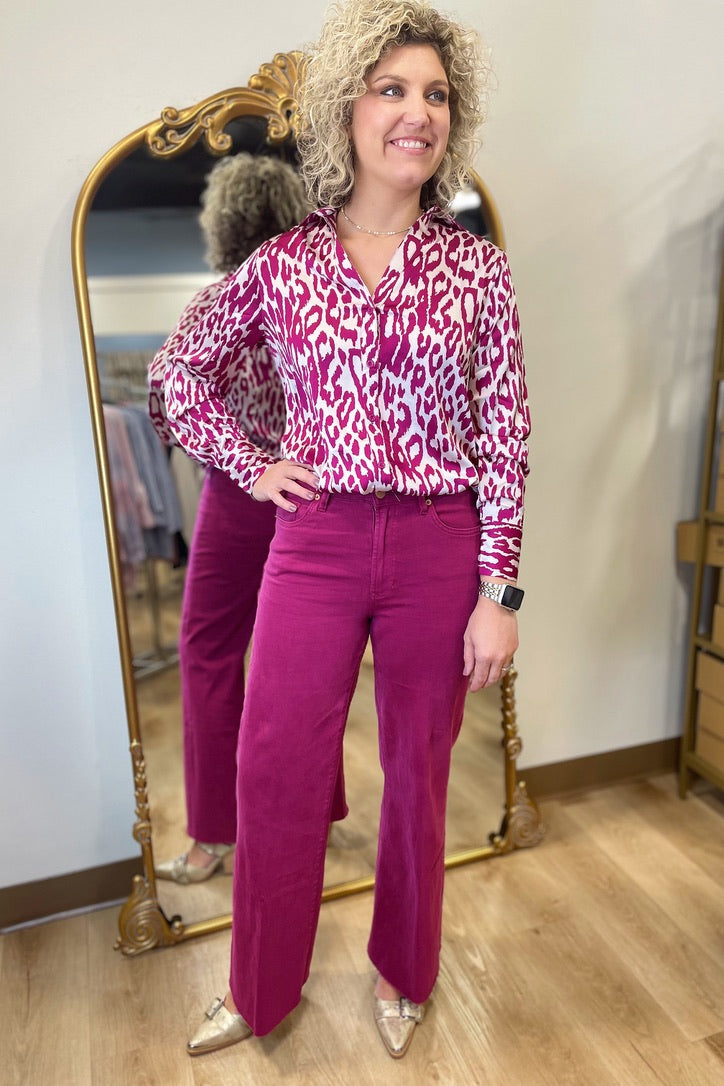 Effortless utility with the Fiona wide leg jean Beaujolais.
