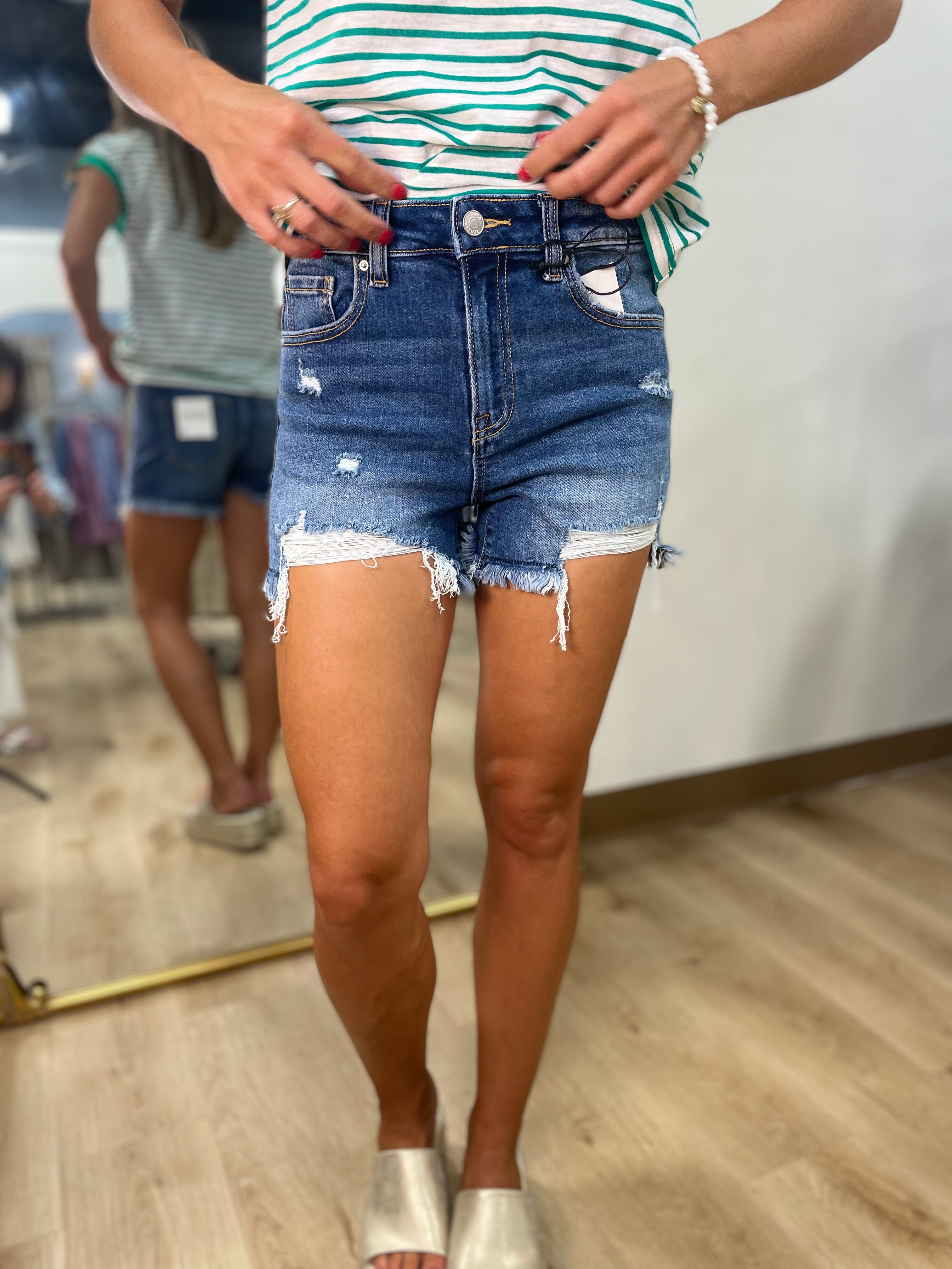 Distressed Denim Shorts Medium Blue.