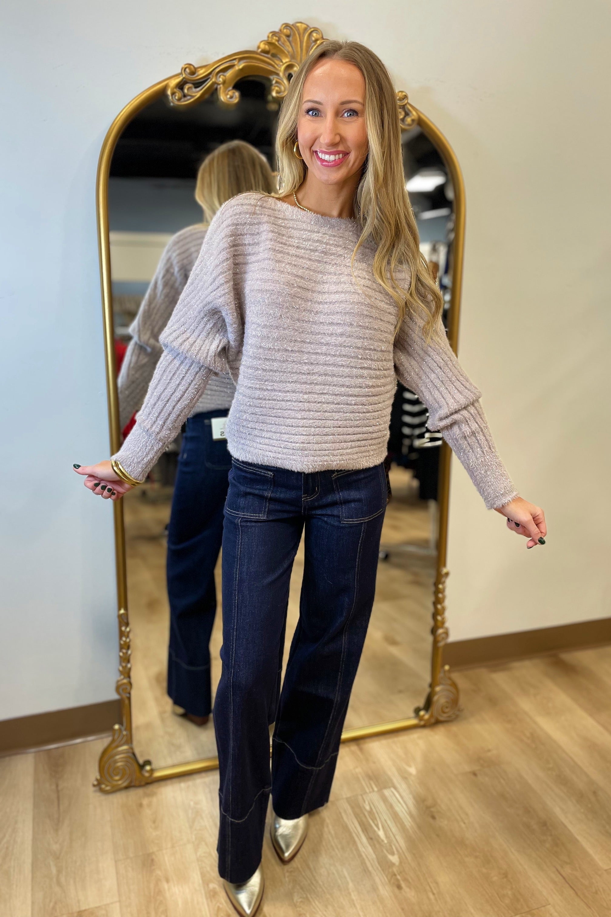 DOLEMA LONG DOLEMAN SLEEVE CREW SILVER TAUPE