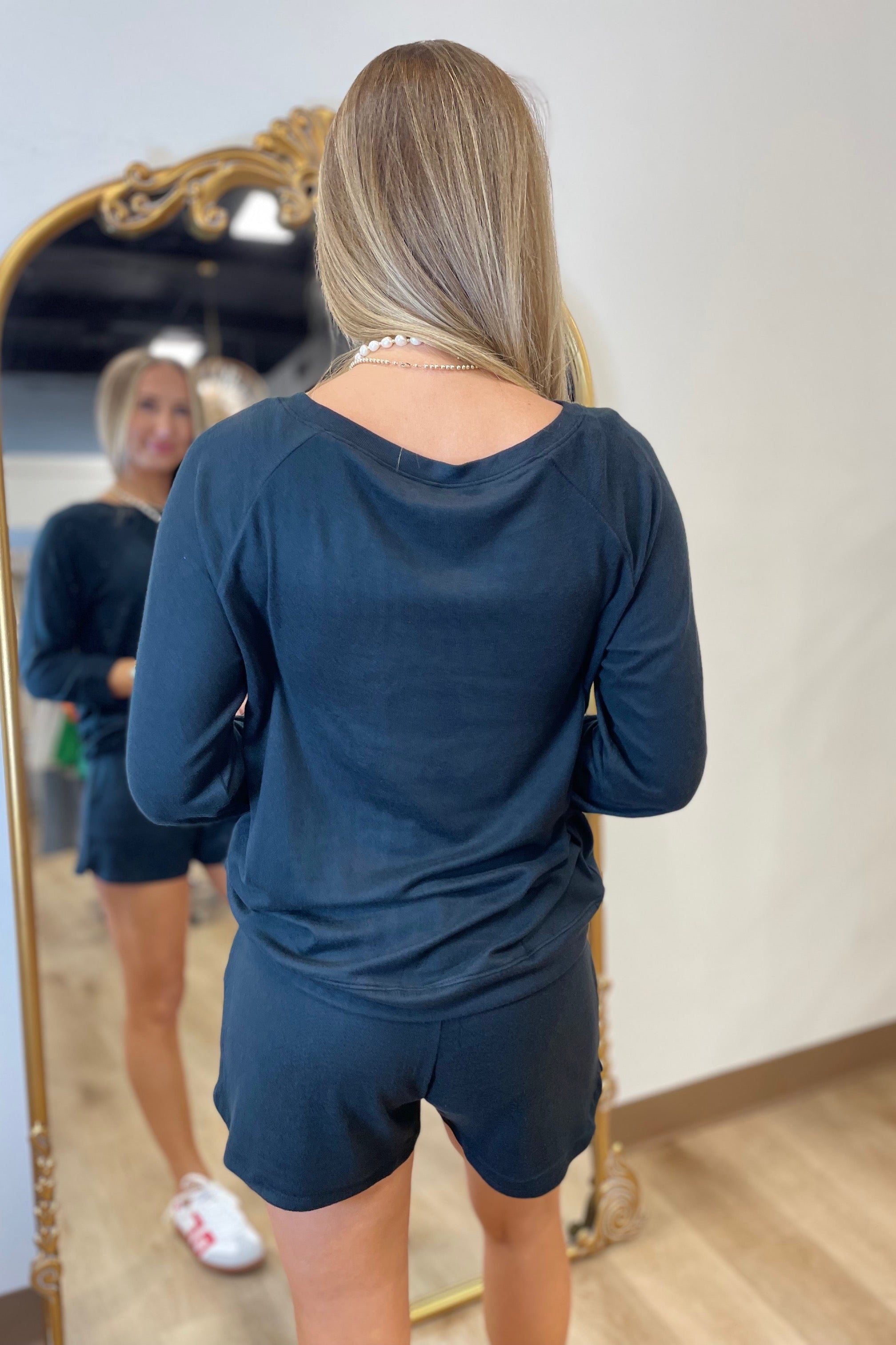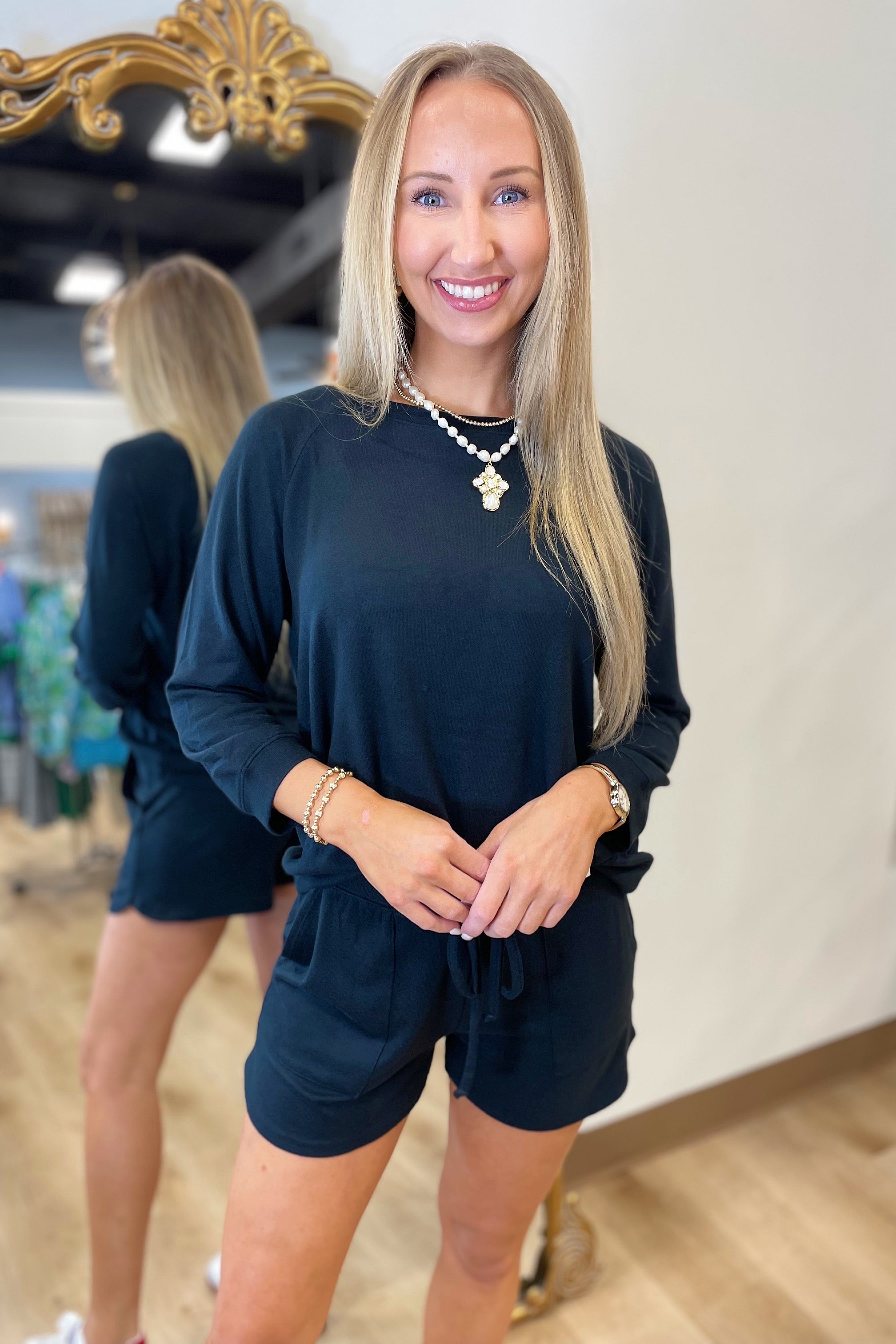 Dream 3/4 Sleeve Boat Neck Top and Short Set Lounge Black