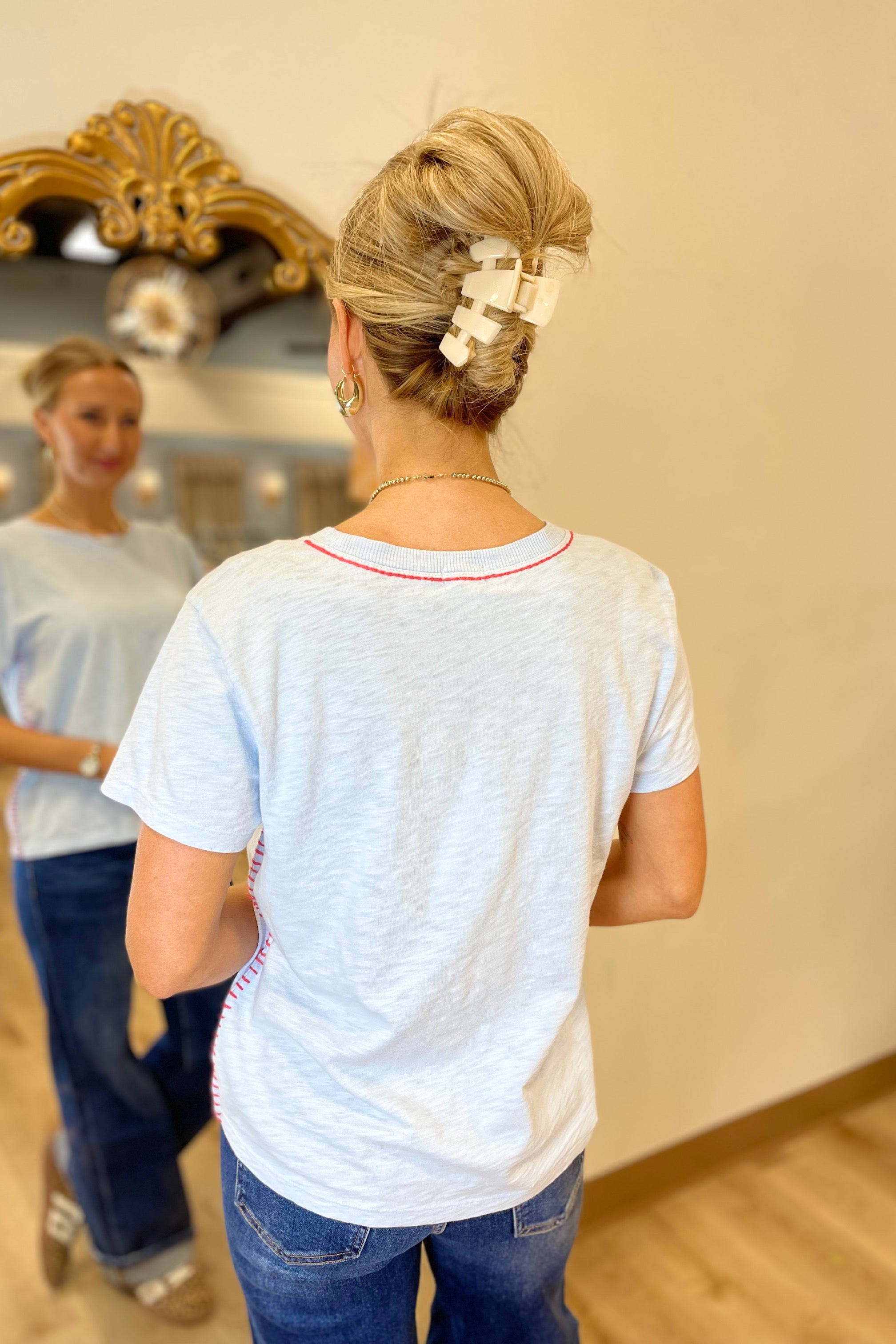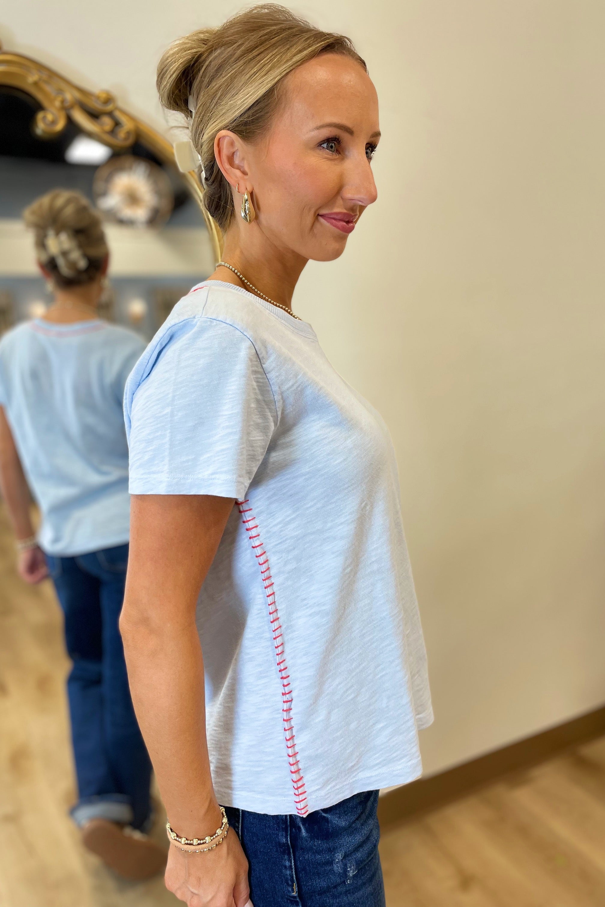 Dylan Contrast Stitch Crew Neck Tee Sky/Poppy Red.