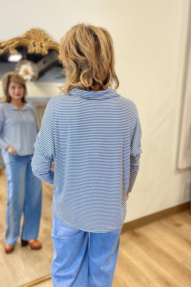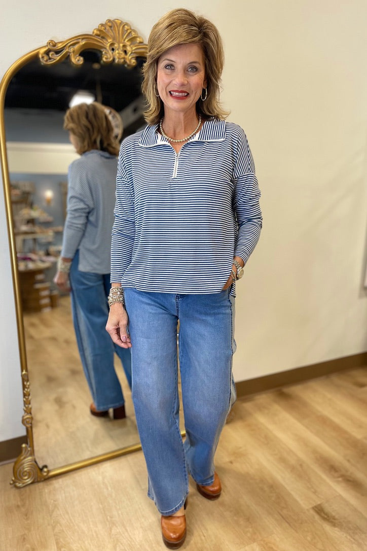 Dylan Stripe Long Sleeve Zip Pullover Navy/White