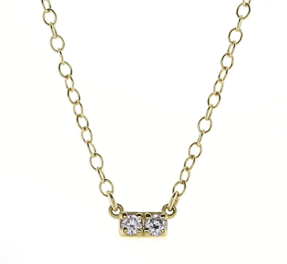 Introducing the first enewton couture piece, the 14kt Gold and Diamond Significance Bar Necklace with two diamonds.