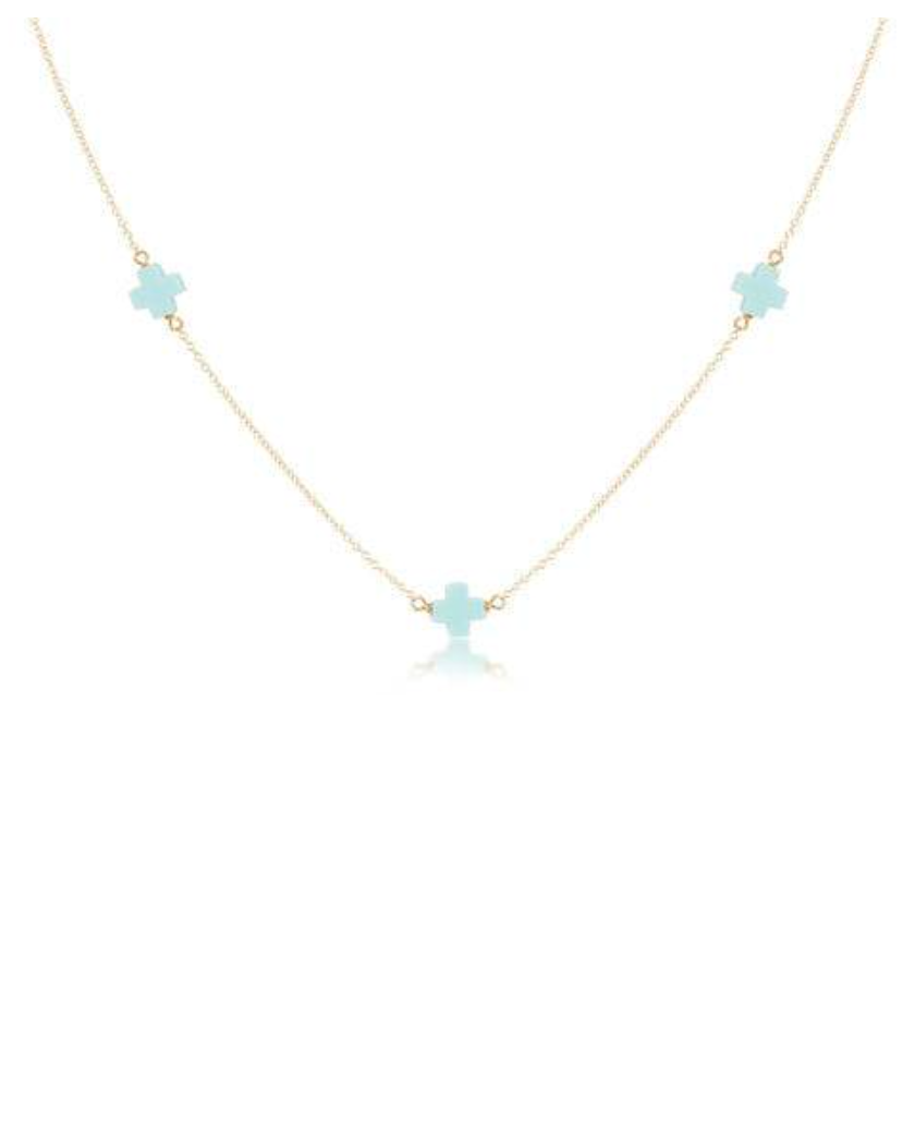 E Newton 15" Chocker Simplicity Chain Gold Signature Cross Turquoise