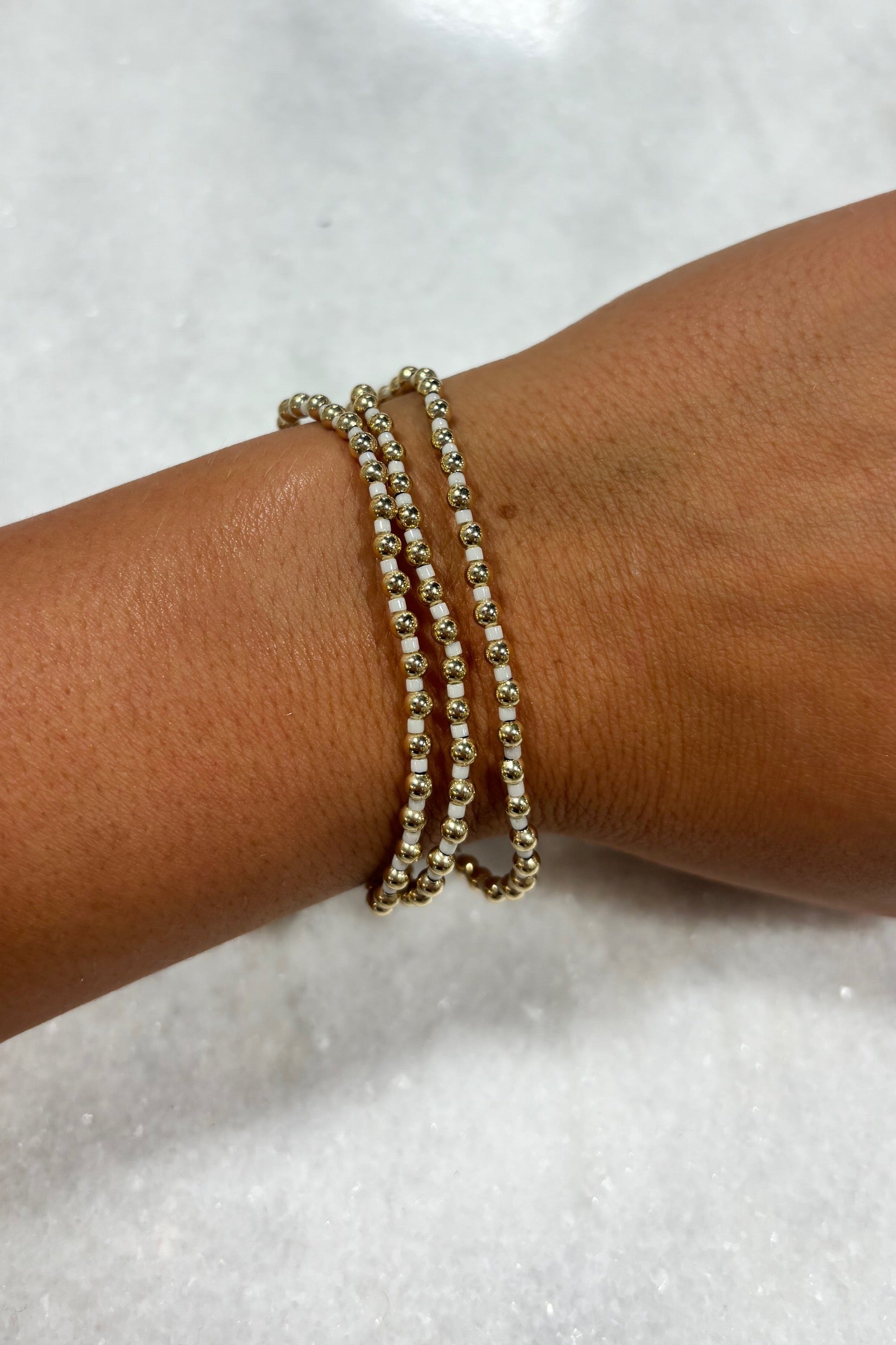 • Hand beaded on high performance elastic for a slight stretch to easily roll on and off your wrist