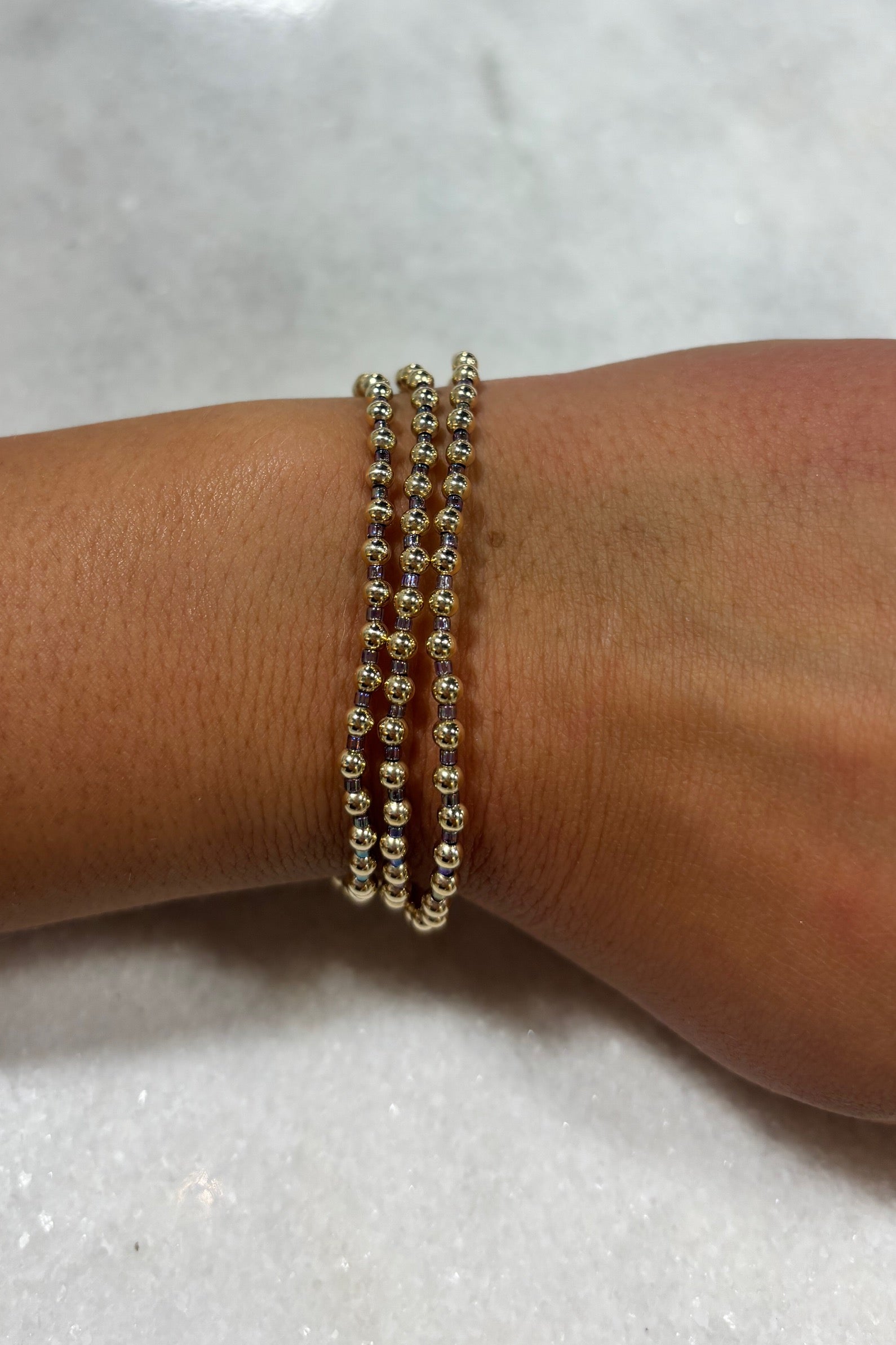 • Hand beaded on high performance elastic for a slight stretch to easily roll on and off your wrist