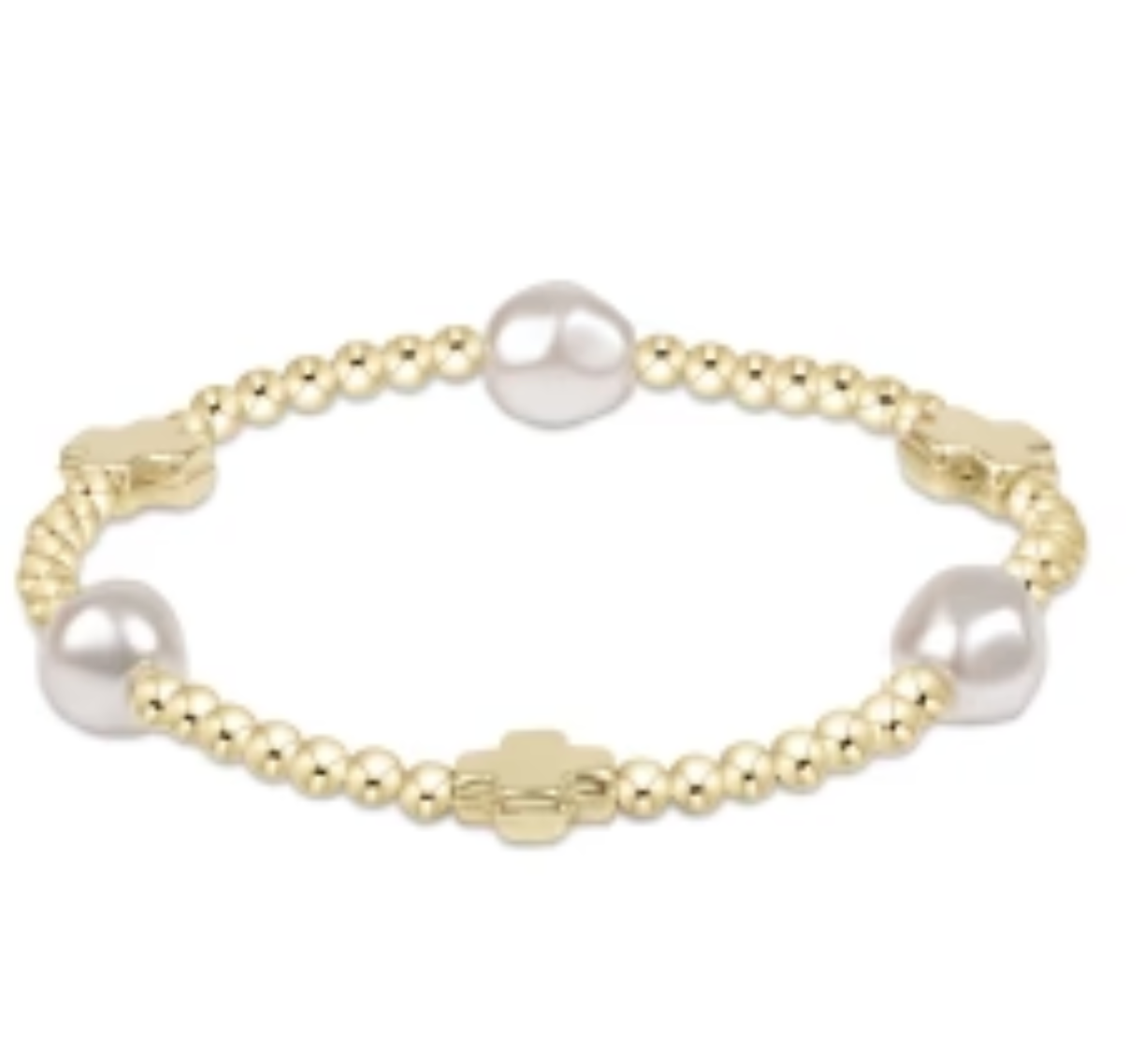 E Newton Signature Cross Admire Pearl 3mm Gold Bracelet