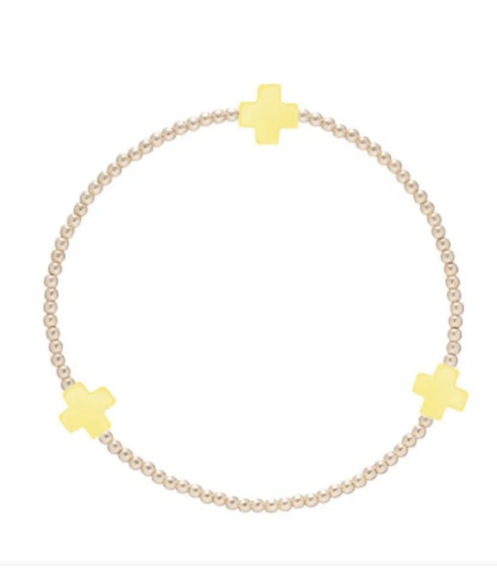 E Newton Signature Cross Gold Pattern 2mm Bead Bracelet Canary