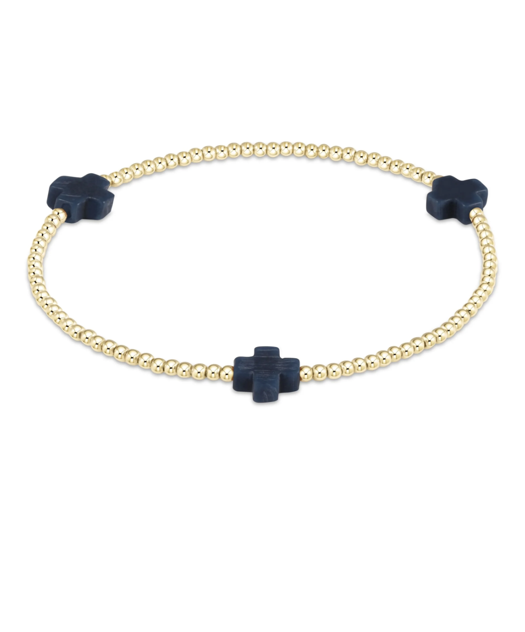 E Newton Signature Cross Gold Pattern 2mm Bead Bracelet Navy