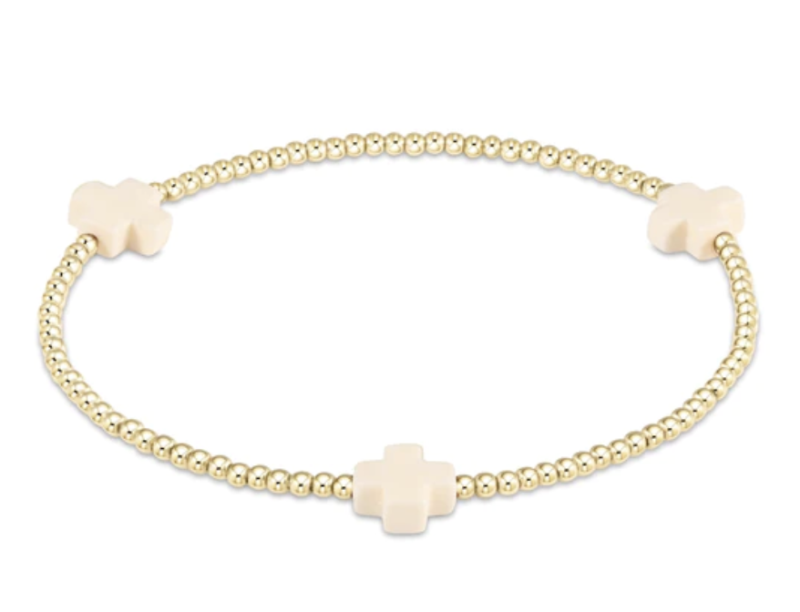 E Newton Signature Cross Gold Pattern 2mm Bead Bracelet Off White