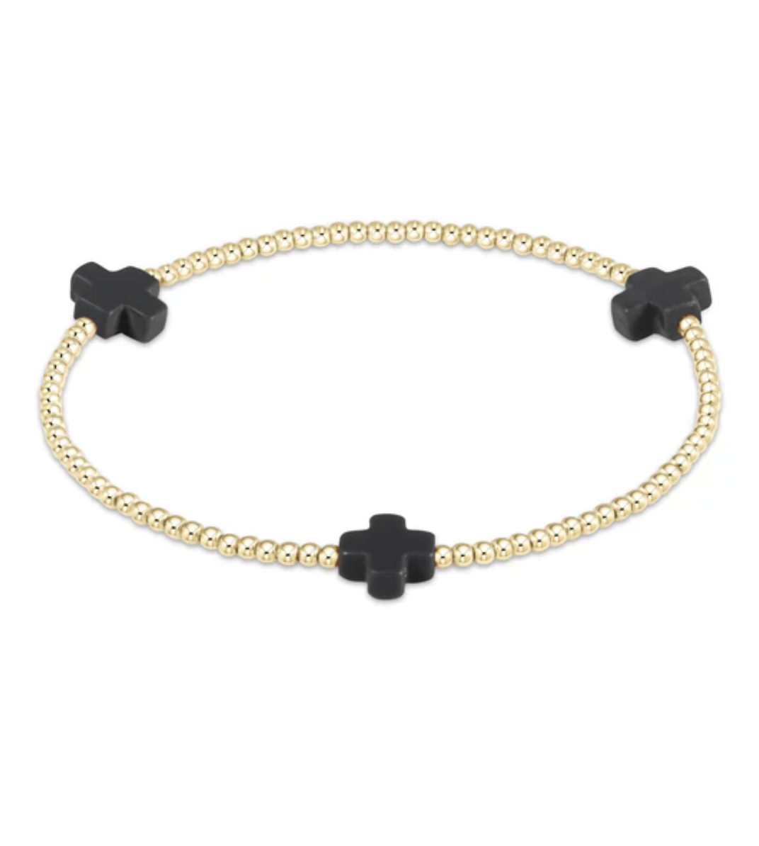 E Newton Signature Cross Gold Pattern 2mm Bead Bracelet Onyx