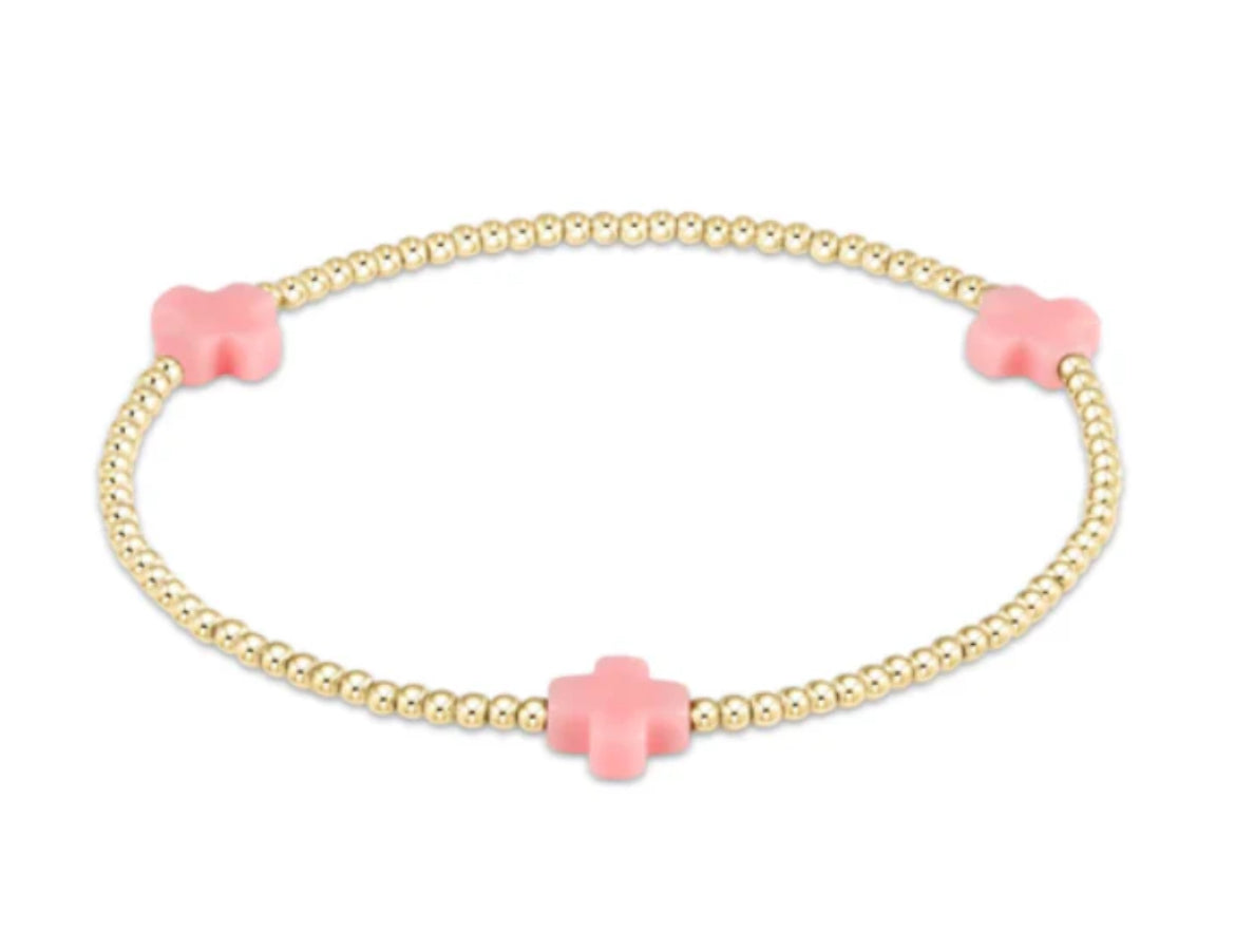 E Newton Signature Cross Gold Pattern 2mm Bead Bracelet Pink