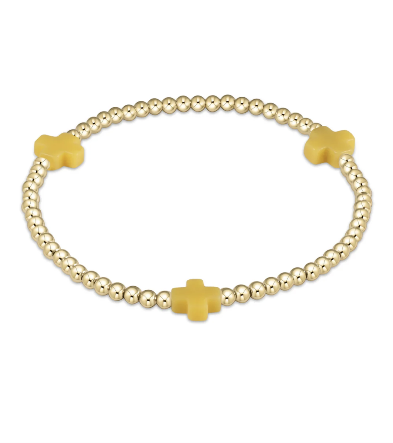 E Newton Signature Cross Gold Pattern 3mm Bead Bracelet Canary