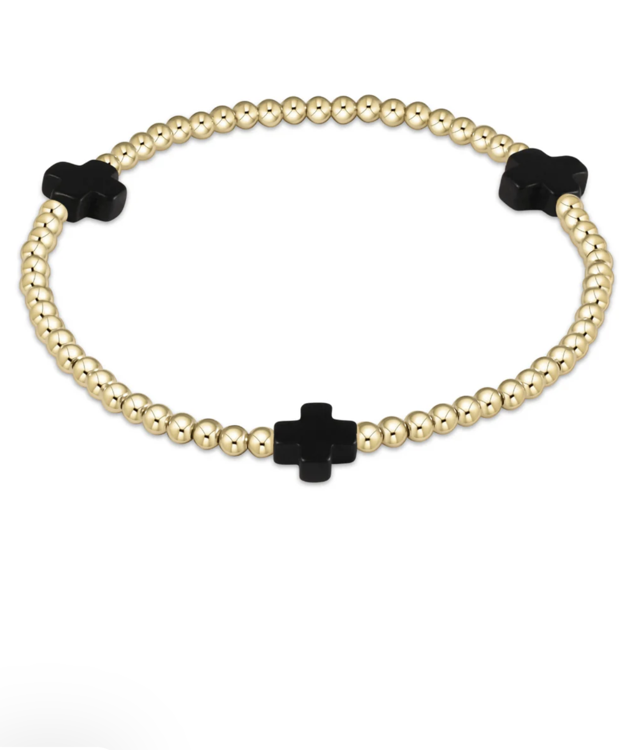 E Newton Signature Cross Gold Pattern 3mm Bead Bracelet Onyx